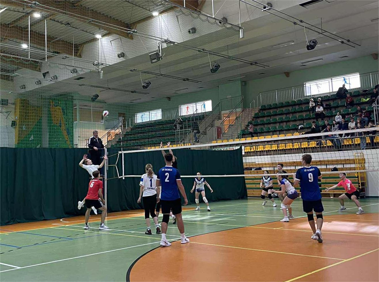 Powiatowy Turniej Siatkówki Drużyn Mieszanych jest organizowany przez PCK. Ma on na celu promowanie i zachęcanie młodzieży do oddawania krwi. Tegoroczna edycja odbywała się dzisiaj, 6 listopada, na hali sportowej OSiR. I to my, podczas dzisiejszych zawodów, zajęliśmy pierwsze miejsce! Wygraliśmy z drużyną ZSLiT i ZSLiA 2:0, a z ekipą z TL – 2:1. Jest to dla nas ważne i budujące zwycięstwo, ponieważ rok temu to z nimi ponieśliśmy porażkę.