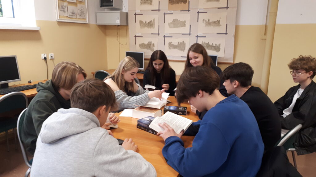 Również podczas zajęć w czytelni Nowodworka uczniowie czytali fragmenty książek zakupionych w ramach NPRC 2021-2025.