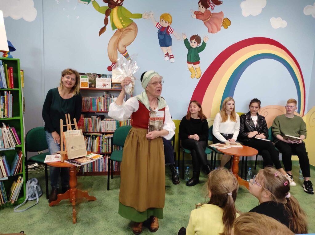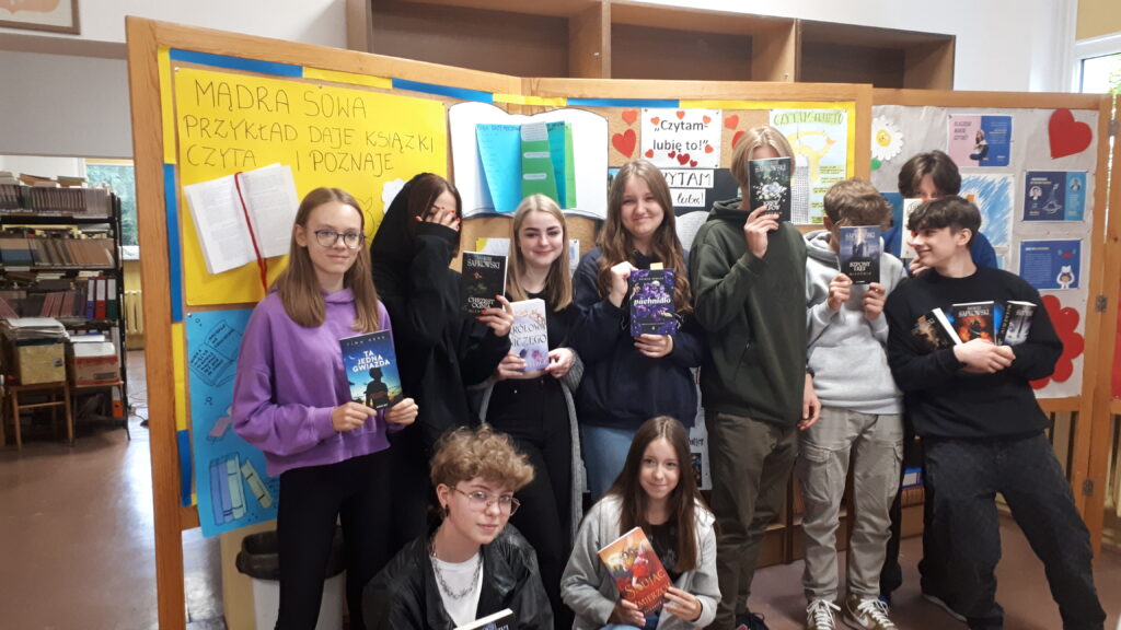 wraz z nauczycielem bibliotekarzem – panią Anną Szreiber uczestniczyli w spotkaniu autorskim z Panią Marią Ollick zorganizowanym z okazji Ogólnopolskiego Dnia Głośnego Czytania.