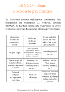 Pamiętajmy o tym, że zdrowie psychiczne jest ważne… nie tylko w październiku, lecz każdego dnia! Kilka porad – jak o nie dbać na co dzień – można znaleźć w poniższym e-poradniku „7 kroków w stronę zdrowia psychicznego”. Link: