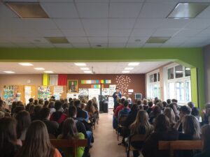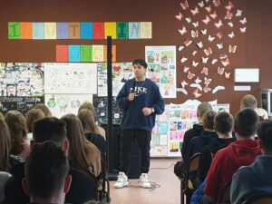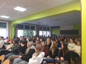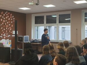 W poniedziałek, 22 stycznia, już po raz drugi w naszej szkole, gościł p. Mirek „Kolah” Kolczyk, który przedstawił klasom: 1A, 1B, 1C, 1D, 2C, 2D, 2E swój autorski program profilaktyki uzależnień „Antymina”. Warto wspomnieć, że choć obecnie „Kolah” mieszka na południu Polski, to pochodzi z Tucholi. Odwiedził swoje rodzinne miasto, by opowiedzieć licealistom, z czym może wiązać się wstąpienie na „minę”, jaką jest uzależnienie od alkoholu czy narkotyków. Przestrzegał słuchaczy przed zagrożeniami współczesności oraz konsekwencjami podejmowania niewłaściwych i niezdrowych wyborów. Historia, którą usłyszeliśmy, z pewnością na długo zostanie w naszej pamięci, Napisało ją bowiem prawdziwe życie i… muzyka, ponieważ opowieść naszego gościa była przeplatana muzyką rap.