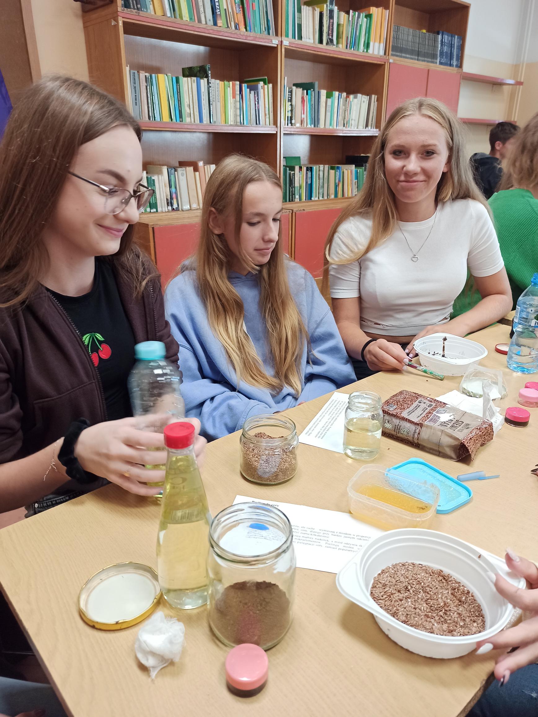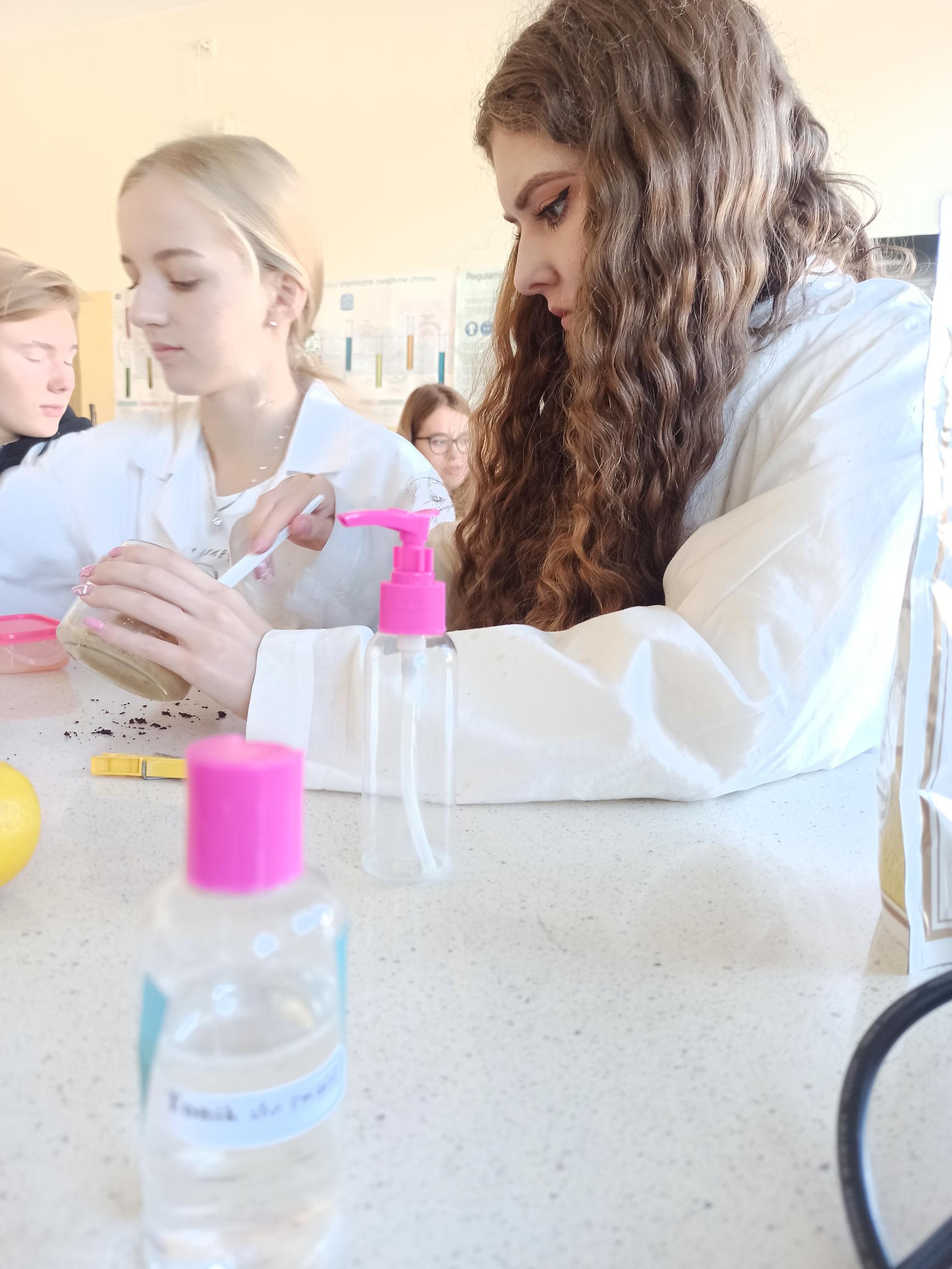 W tym tygodniu podczas lekcji chemii- uczniowie klasy 1E i 3C pod opieką Pani Emilii Drewczyńskiej -przygotowali kosmetyki z naturalnych składników. Wśród zrobionych produktów znalazły się mi.in. peeling kawowy, tonik do twarzy, maska do włosów czy pachnący cytryną balsam do ciała.