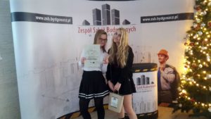 Uczennice klasy 2aG, Zuzanna Rozmarynowicz i Wiktoria Pieczka, wzięły udział w międzyszkolnym konkursie „Friendly Mobile” organizowanym przez Zespół Szkół Budowlanych w Bydgoszczy i tym samym reprezentowały naszą szkołę. Zadaniem uczestników było nagranie krótkiego filmu reklamowego prezentującego produkt użytkowy w języku obcym. Film miał mieć charakter reklamy telewizyjnej, a więc nie mógł być zbyt długi, musiał w czytelny i jednoznaczny sposób opisywać zalety produktu, a sposób jego realizacji powinien być dynamiczny i interesujący. Jednak najważniejszym ograniczeniem było nagranie filmu za pomocą telefonu komórkowego. Uczestnicy mogli pracować w dwuosobowych zespołach, nie licząc zaangażowanych aktorów.