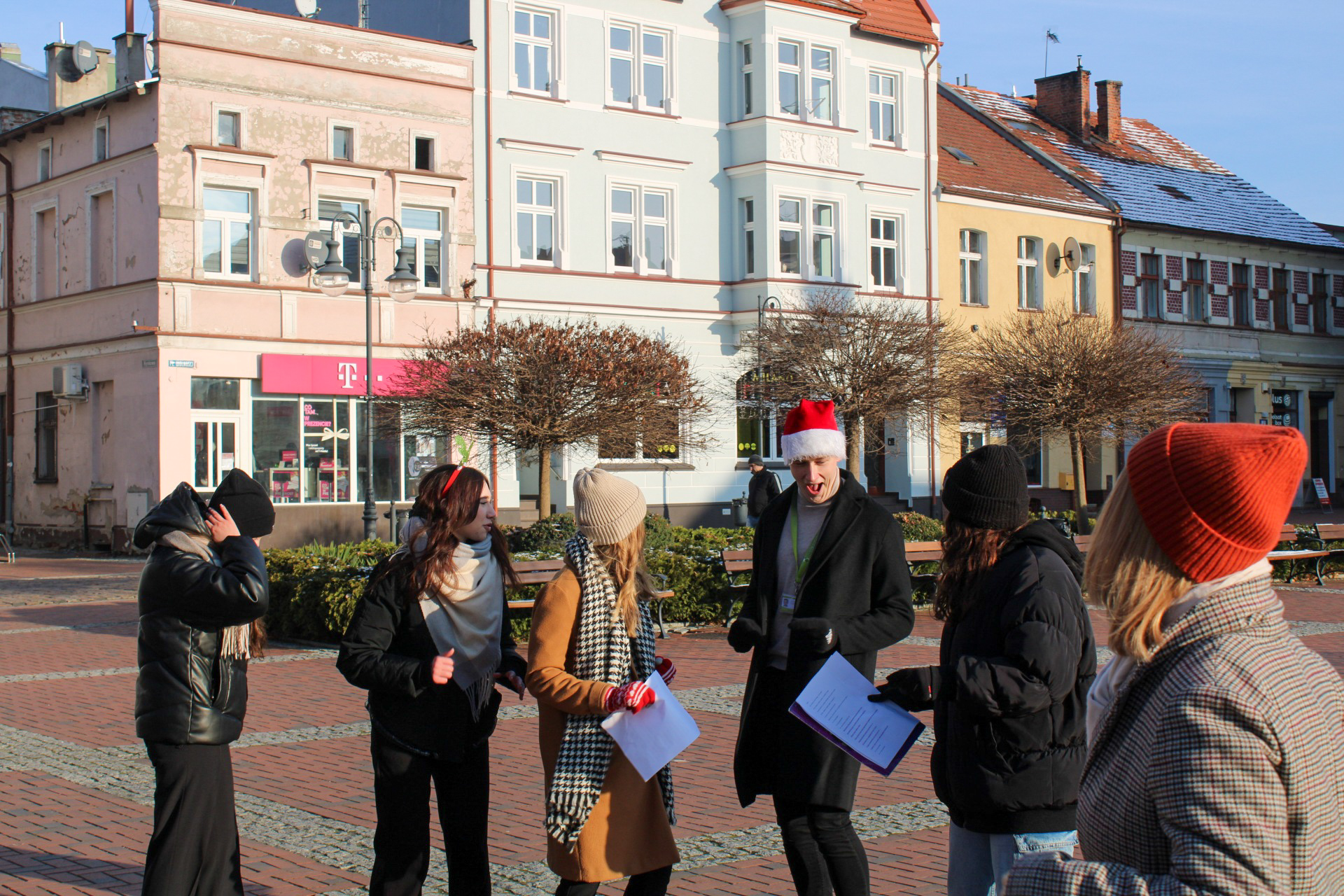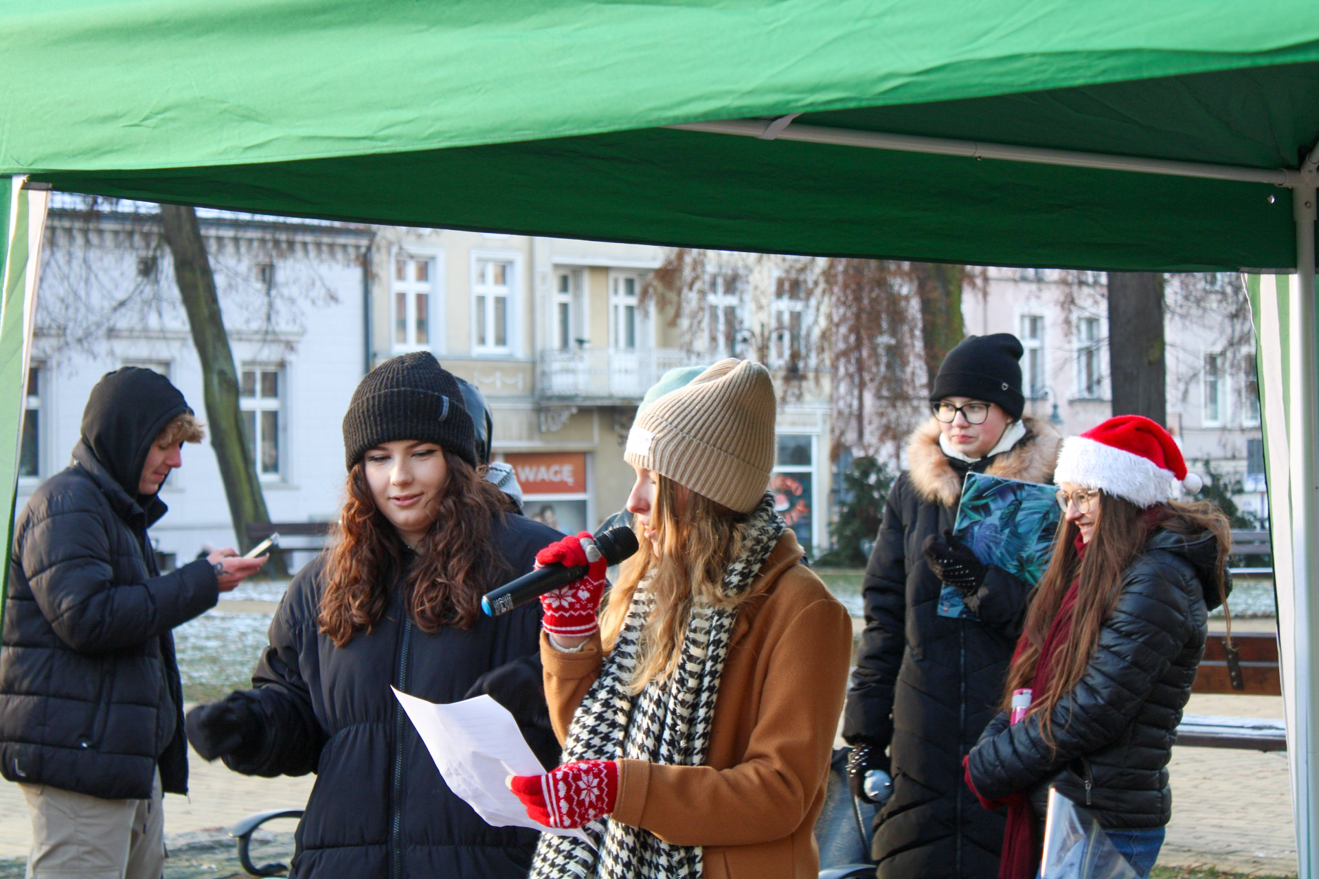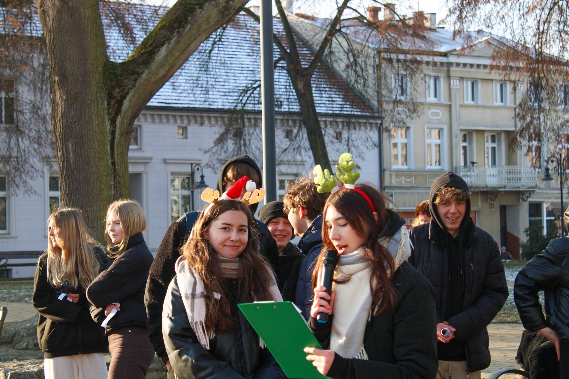 Uczniowie Nowodworka w centrum Tucholi częstowali mieszkańców słodkościami, składali życzenia, czytali fragmenty „Opowieści wigilijnej ” i śpiewali utwory w klimacie Świąt Bożego Narodzenia.