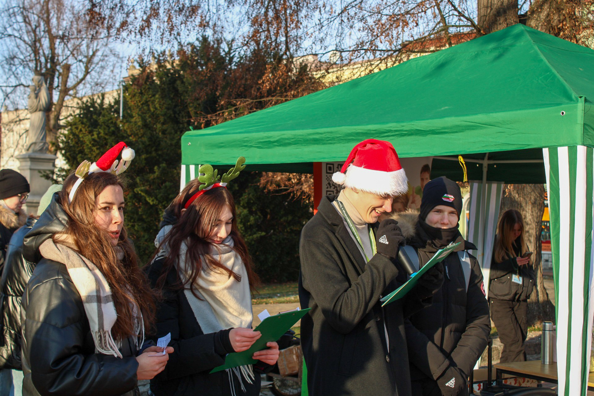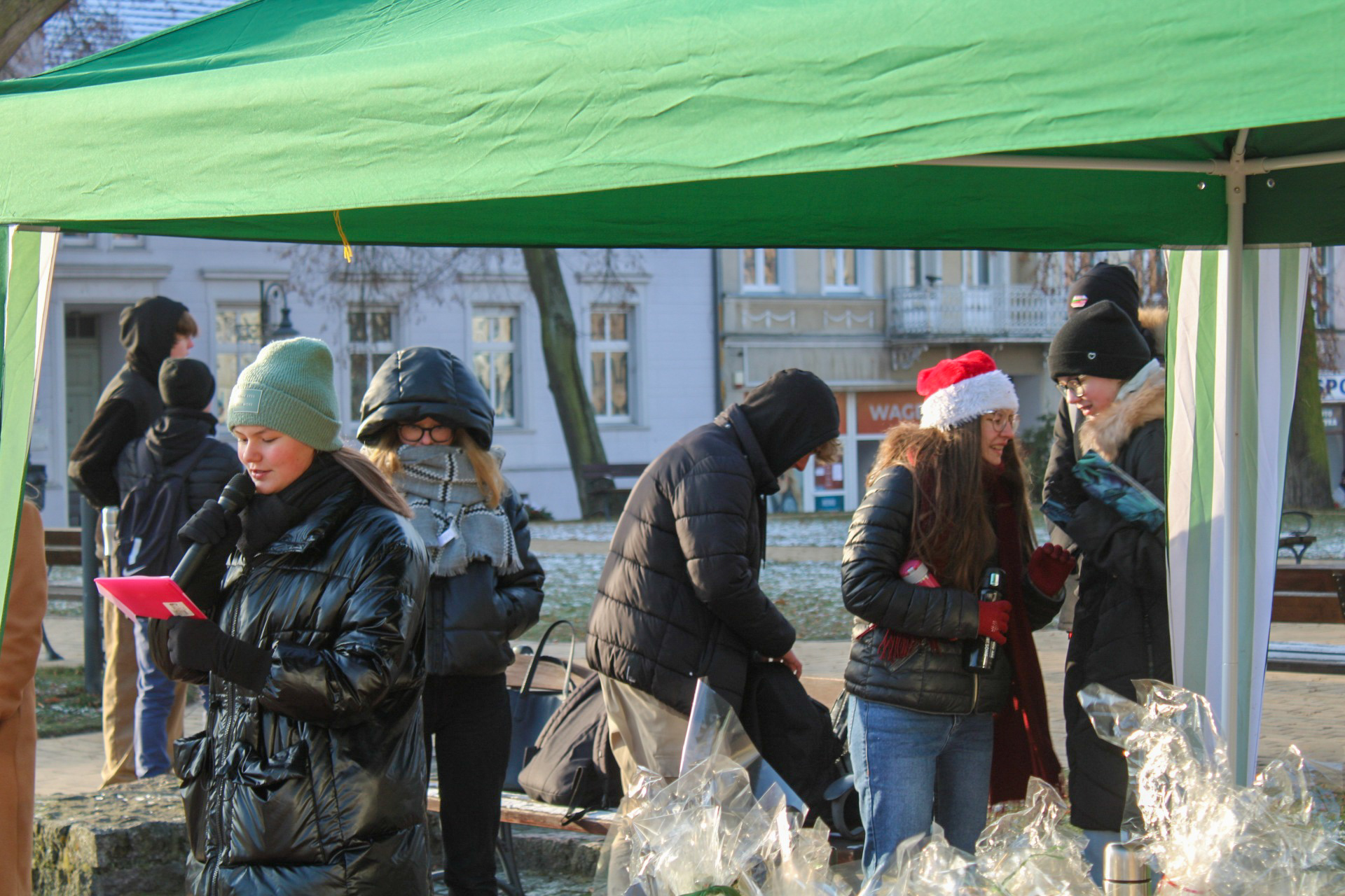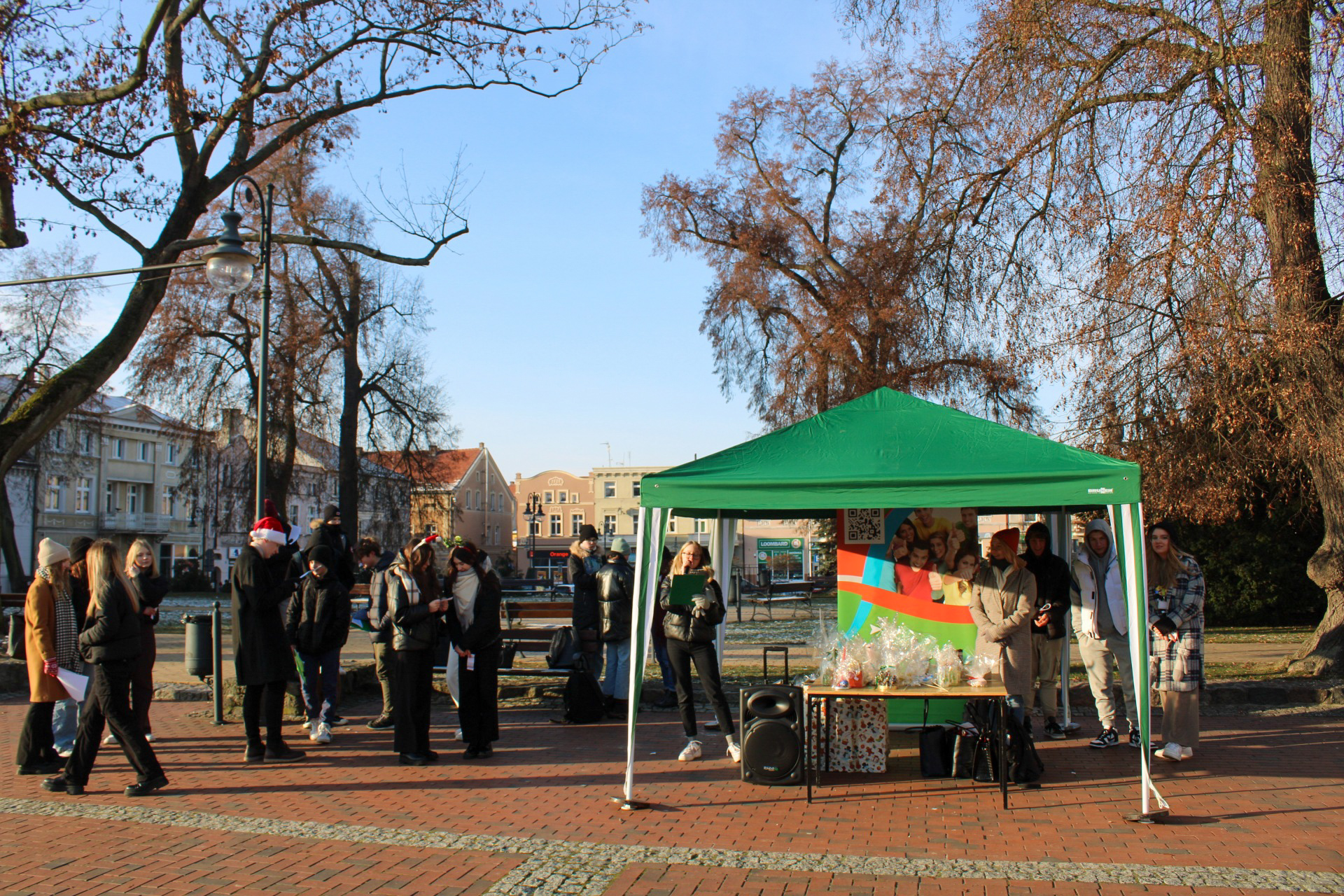 Uczniowie Nowodworka w centrum Tucholi częstowali mieszkańców słodkościami, składali życzenia, czytali fragmenty „Opowieści wigilijnej ” i śpiewali utwory w klimacie Świąt Bożego Narodzenia.