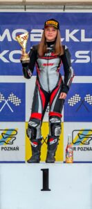 Cześć, nazywam się Antonina „Tosia” Rogalska i jestem zawodniczką torowych wyścigów motocyklowych. Chciałabym w kilku zdaniach przybliżyć Wam, na czym polega ten sport. Motorsport to dla mnie nie tylko rywalizacja, lecz przede wszystkim pasja, która kształtuje mój charakter i determinację. Od najmłodszych lat prędkość, adrenalina i wyzwania były nieodłącznymi elementami mojego życia. Choć wyścigi motocyklowe niosą ze sobą ryzyko, to właśnie na torze odnajduję spokój i pełnię skupienia. Jestem zawodniczką wyścigów motocyklowych i od kilku lat rywalizuję na torach w różnych klasach. Przez ostatnie dwa sezony ścigałam się w kategorii SuperStock 300, dosiadając Yamahy R3, który na długiej prostej osiąga prędkość ponad 200 km/h. Moje osiągnięcia obejmują m.in. tytuły Mistrzyni Polski, Wicemistrzyni Polski oraz Mistrzyni Śląska. Każdy start to dla mnie okazja do podnoszenia swoich umiejętności i przesuwania własnych granic. Mimo młodego wieku mam już na koncie znaczące sukcesy, jednak żaden z nich nie byłby możliwy bez wsparcia mojej rodziny, zespołu oraz sponsorów, dzięki którym mogę rozwijać swoją karierę. Wyścigi to moja największa pasja, ale równie mocno cenię edukację – w przyszłości planuję łączyć sport ze studiami. W zawodach rywalizuję z doświadczonymi zawodnikami – zarówno kobietami, jak i mężczyznami. W tym sporcie nie ma taryfy ulgowej – liczą się umiejętności, precyzja i bezkompromisowa walka o ułamki sekund. Sezon 2025 zapowiada się niezwykle emocjonująco, ale już teraz patrzę w przyszłość – w 2026 roku planuję przesiąść się na motocykl o pojemności 650 cm³, który osiąga prędkości bliżej 300 km/h. To będzie ogromny krok w mojej karierze, wymagający jeszcze większych umiejętności, ale właśnie to kocham w motorsporcie – ciągły rozwój i nowe wyzwania. W Polsce wyścigi SST300 odbywają się głównie na krótkich torach, ponieważ mamy tylko jeden duży obiekt wyścigowy. Dlatego na zawody i treningi jeździ się po Europie. Wyścigi są niezwykle zacięte, a zawodnicy rywalizują przy dużych prędkościach i kontrolowanych uślizgach motocykla.