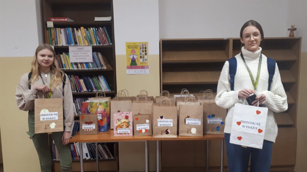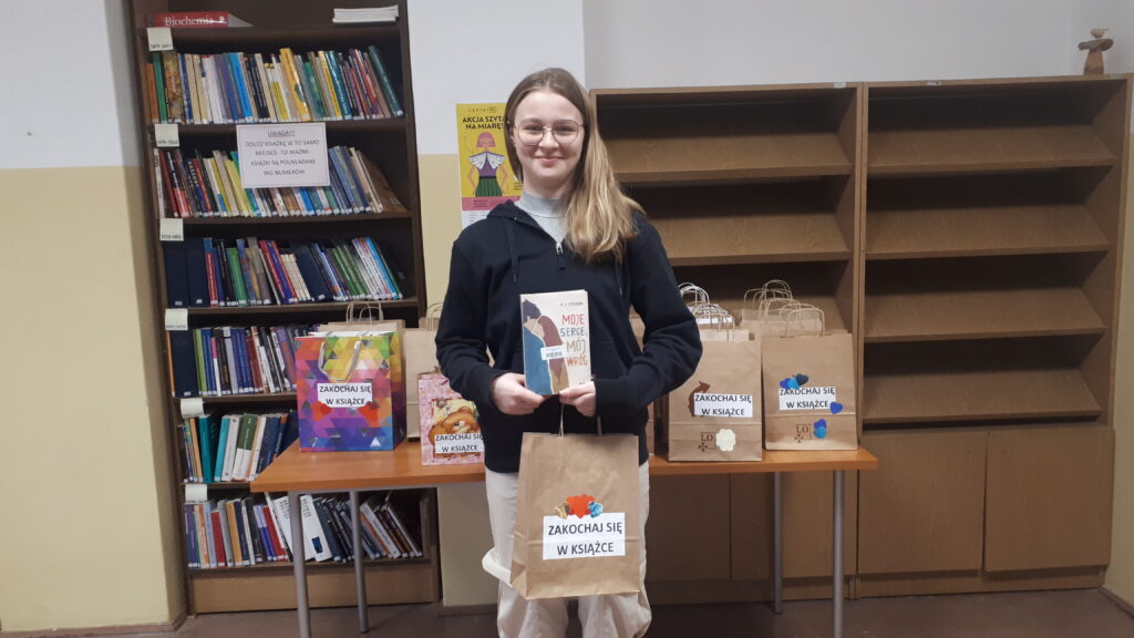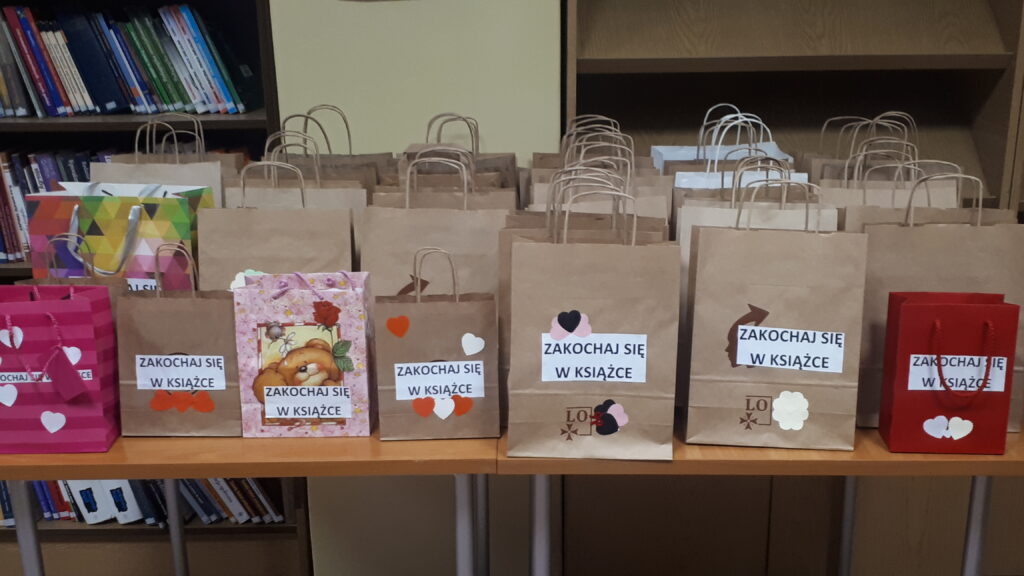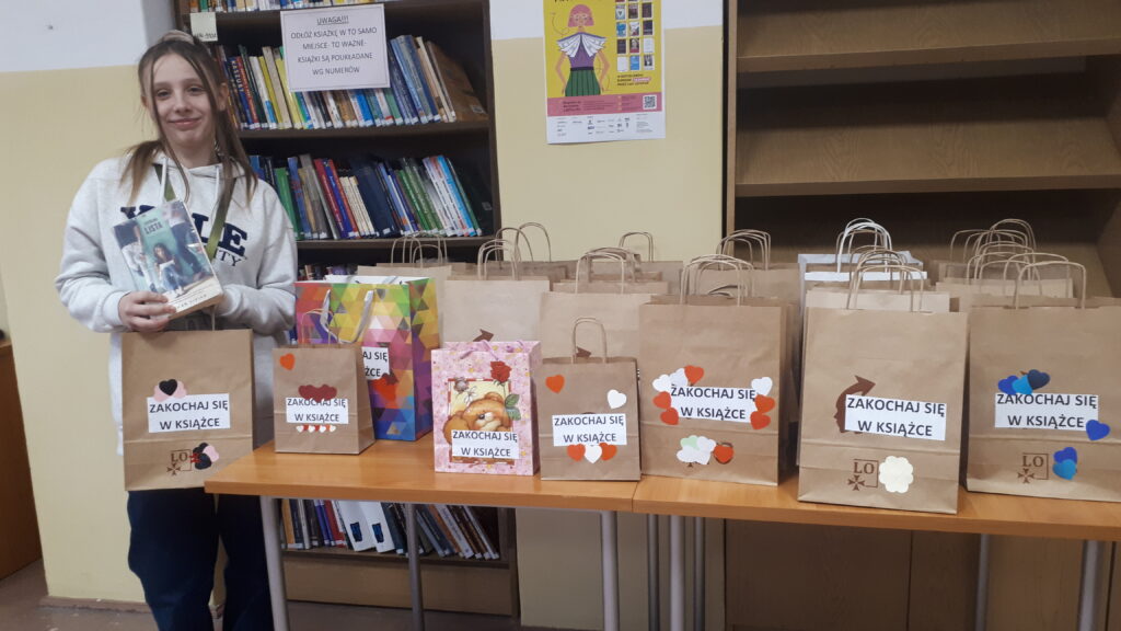 Walentynkowy nastrój zagościł w bibliotece szkolnej już przed feriami. Na zajęciach dodatkowych dla uczniów biblioteka Nowodworka przygotowała dla wszystkich uczniów, nauczycieli, pracowników szkoły, rodziców projekt czytelniczy o nazwie „Zakochaj się w książce w ferie zimowe”.