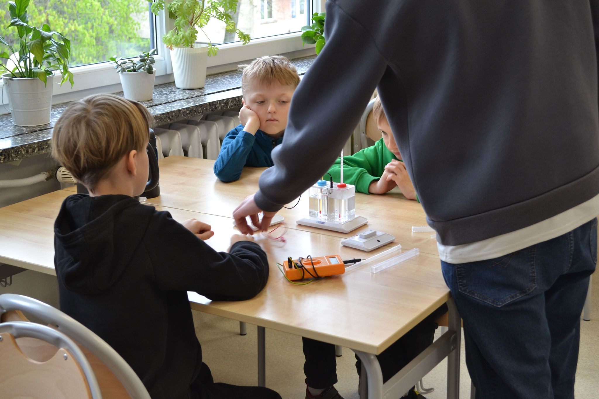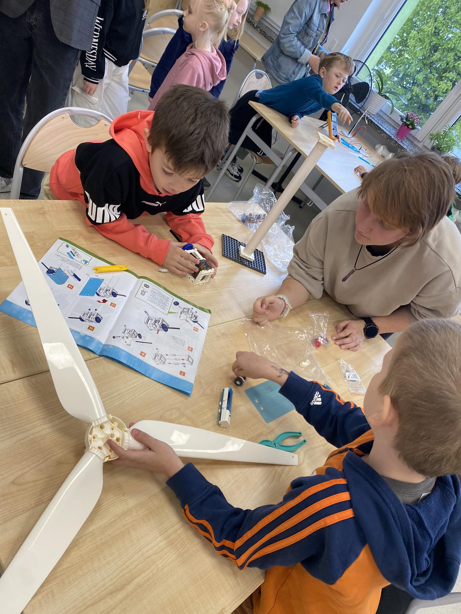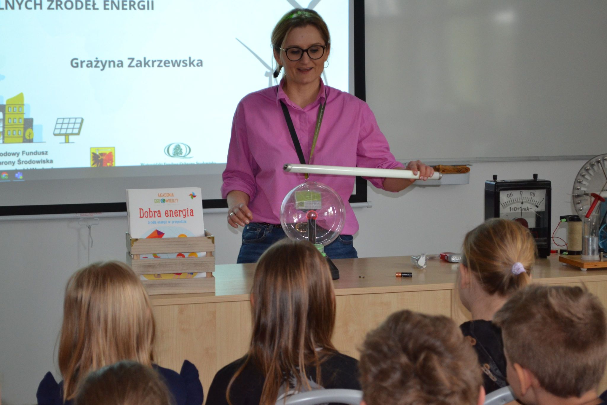 W kwietniu uczniowie klasy 1 Szkoły Podstawowej nr 1 w Tucholi, pod opieką swojej wychowawczyni pani Joanny Bucholc, mieli wyjątkową okazję uczestniczyć w warsztatach dotyczących pozyskiwania i przemian energii, w tym odnawialnych źródeł energii. Zajęcia, które odbyły się w nowoczesnej ekopracowni naszej szkoły, okazały się nie tylko bardzo ciekawe, ale również niezwykle pouczające. Warsztaty rozpoczęły się krótkim wprowadzeniem, po którym młodzi uczestnicy przystąpili do praktycznych doświadczeń. Pod czujnym okiem uczniów liceum oraz nauczycielki fizyki pani Grażyny Zakrzewskiej, pierwszoklasiści mieli możliwość samodzielnego eksperymentowania z różnymi źródłami energii. Starsi koledzy i koleżanki cierpliwie tłumaczyli zasady działania urządzeń, pomagali w przeprowadzaniu doświadczeń i odpowiadali na liczne pytania. Dzieci dowiedziały się, jak działa turbina wiatrowa, w jaki sposób panele słoneczne przekształcają promienie słoneczne w energię elektryczną, a także poznały zasady działania urządzeń do pozyskiwania energii ze słonej wody i energii termalnej. Co więcej, miały okazję poznać zasadę działania samochodu na wodę. Dzięki interaktywnym ćwiczeniom, najmłodsi uczniowie mogli na własne oczy zobaczyć, jak odnawialne źródła energii mogą przyczynić się do ochrony środowiska. Warsztaty zakończyły się wspólnym podsumowaniem zdobytej wiedzy oraz wręczeniem pamiątkowych książeczek dla wszystkich uczestników. Uśmiechy na twarzach dzieci były najlepszym dowodem na to, że takie zajęcia są nie tylko edukacyjne, ale również sprawiają ogromną radość. Serdeczne podziękowania należą się uczniom liceum, którzy swoimi umiejętnościami i zaangażowaniem przyczynili się do sukcesu warsztatów. Dzięki ich pomocy, pierwszoklasiści mogli poczuć się jak prawdziwi naukowcy, odkrywając fascynujący świat energii.