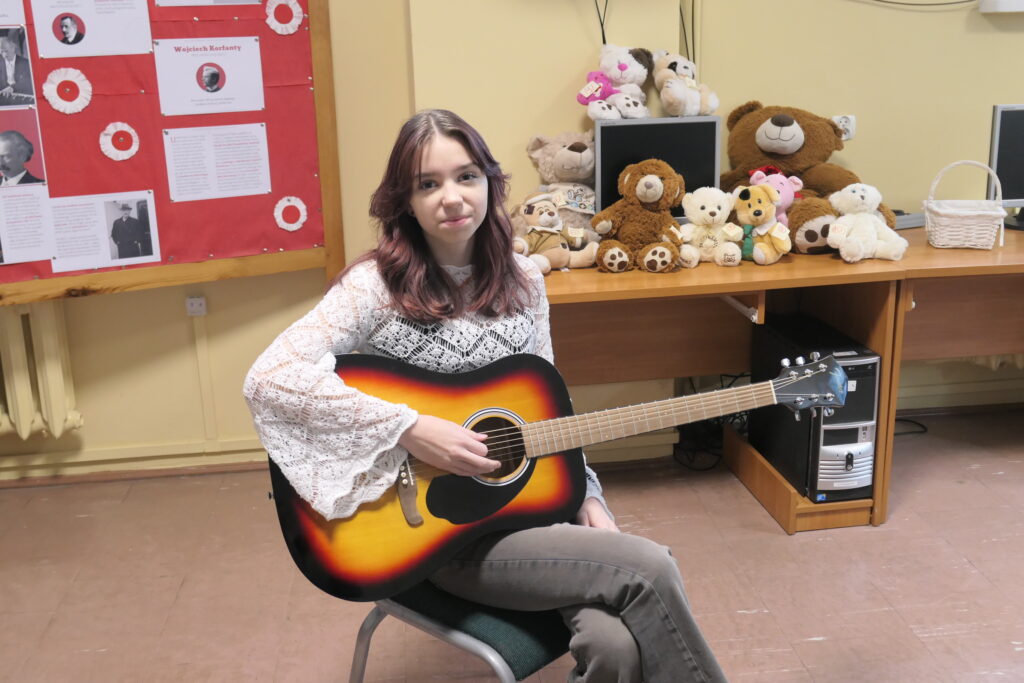 Spotkanie umiliły nam piękne polskie piosenki dla dzieci zagrane przez Emilię Gierszewską (IIA). Wspólnie zaśpiewaliśmy m.in. „Starego niedźwiedzia”.