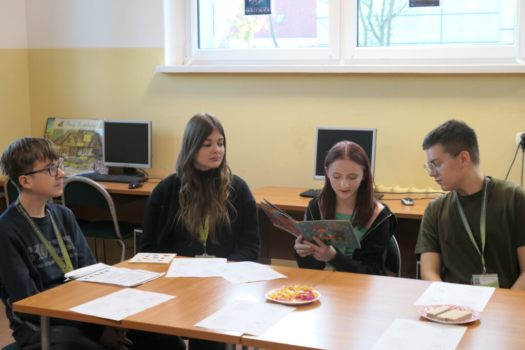Po wysłuchaniu przeczytanych opowiadań i historyjek dzieci odpowiadały na pytania zawiązane z literaturą, następnie nasi mali goście kolorowali obrazki pochodzące z opowieści. Wykonane prace dzieci zabrały do swojej szkoły.