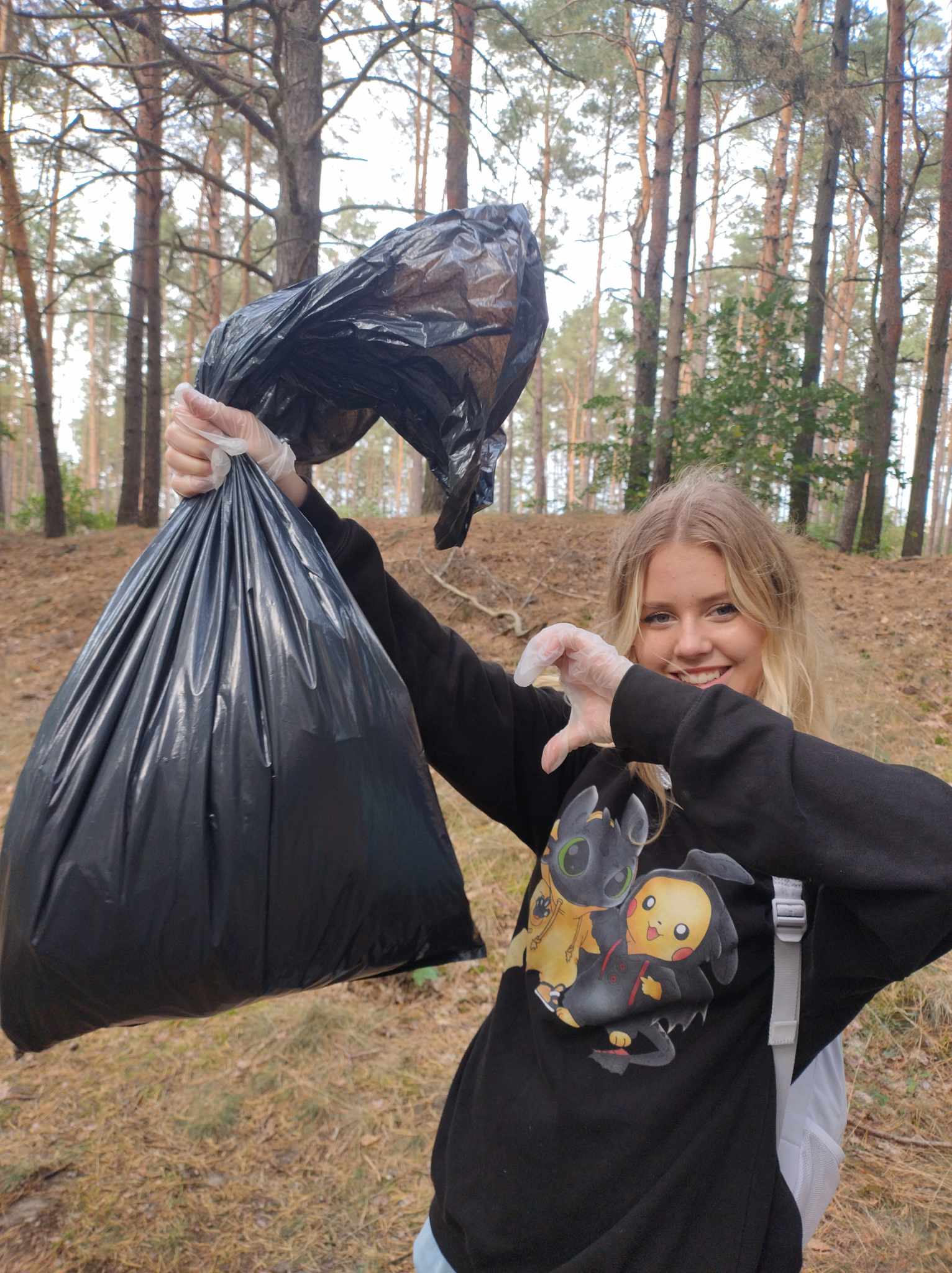 Komunalnym- wyruszając w teren- otrzymaliśmy rękawiczki i worki na