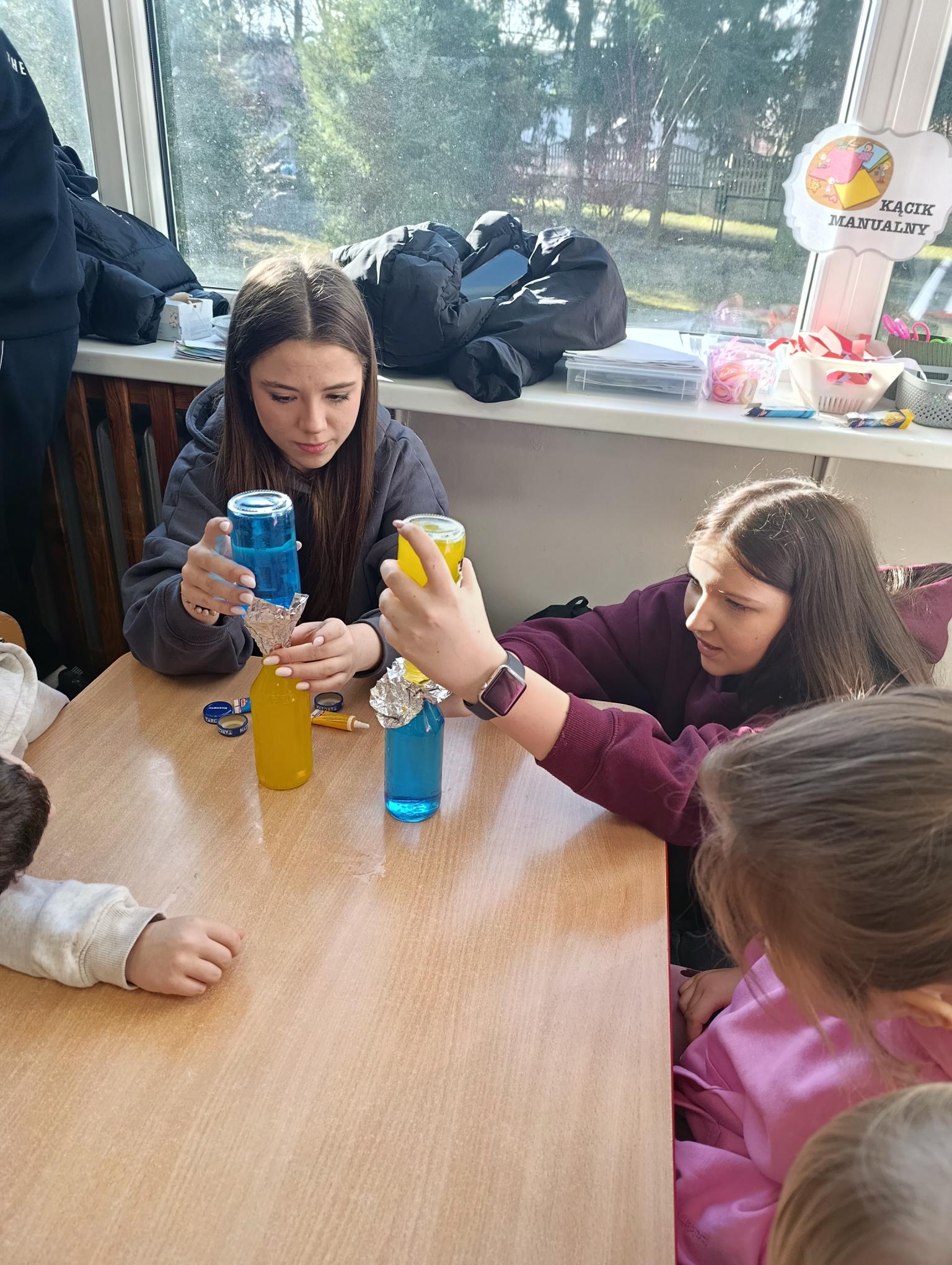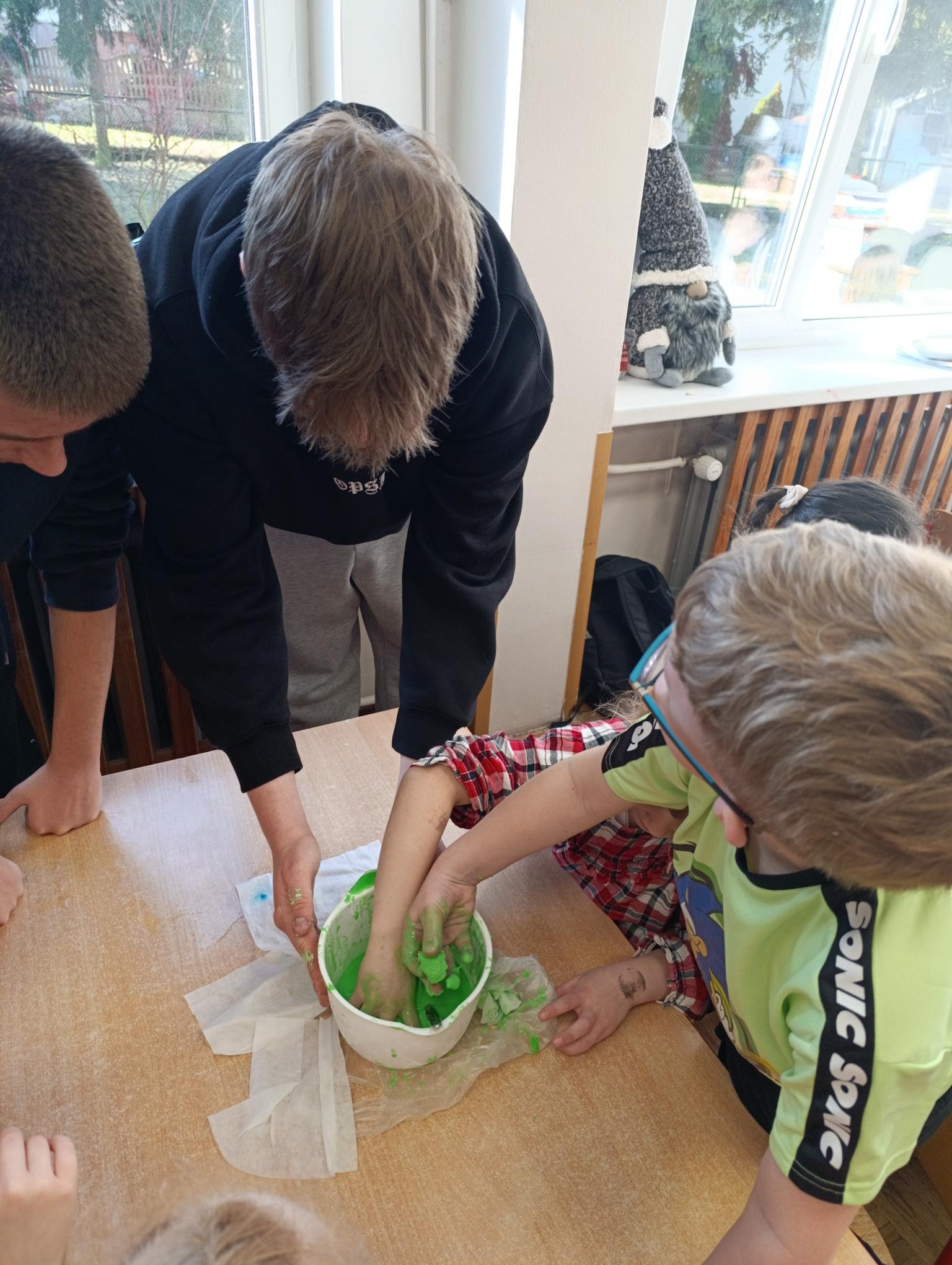 W marcu uczniowie klasy 1c przygotowali dla przedszkolaków proste, angażujące doświadczenia naukowe. W ten sposób promujemy naukę zjawisk fizyczno – chemicznych poprzez bezpieczną zabawę i elementy sensoryczne. W podziękowaniu licealiści otrzymali piękne laurki a przede wszystkim radość i zaangażowanie dzieci.