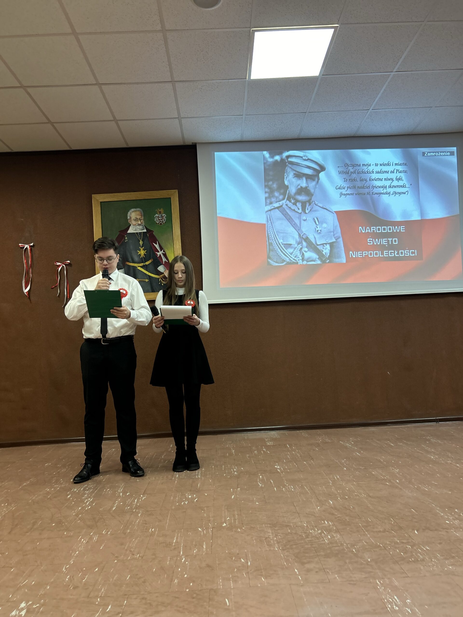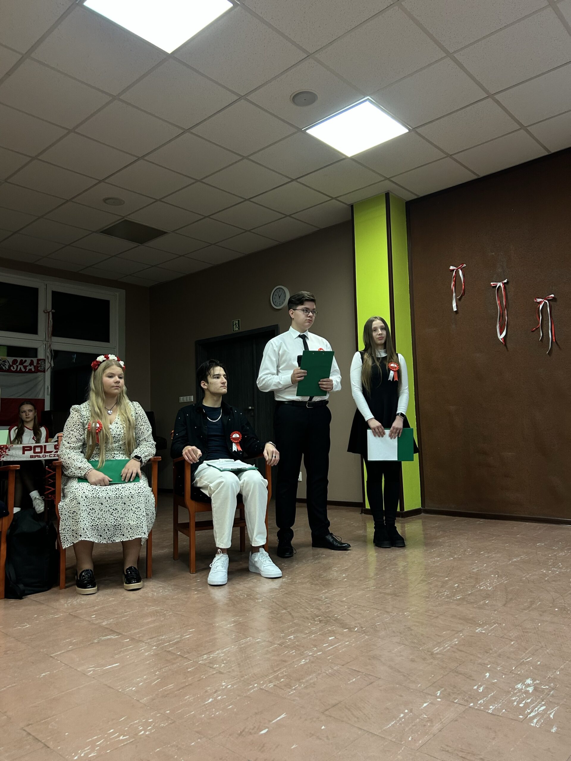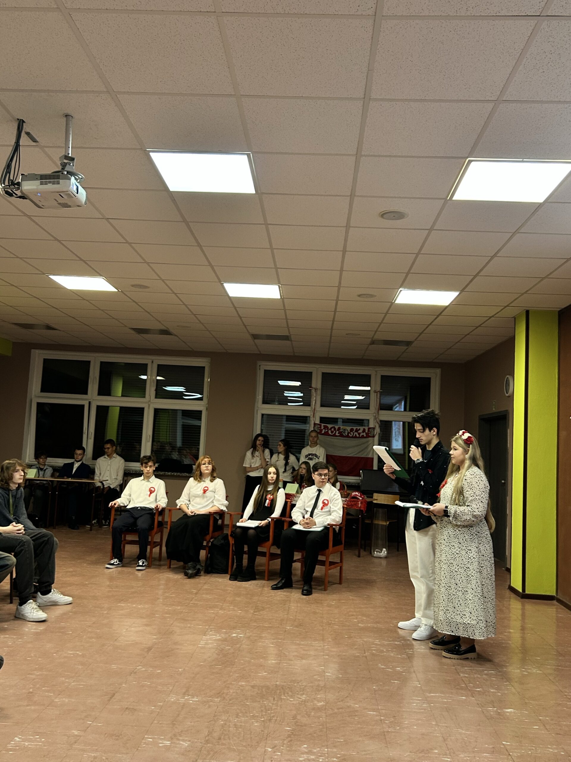 Na tym jednak patriotyczna atmosfera nie zakończyła się. W auli szkolnej, zaraz po odśpiewaniu „Mazurka Dąbrowskiego”, odbyła się gala poświęcona odzyskaniu w 1918 r. suwerenności przez nasz kraj, podczas której uczniowie śpiewali i recytowali poezję. Wydarzenie to połączone zostało z konkursami o tematyce niepodległościowej.
