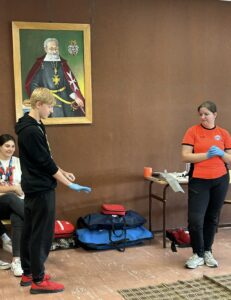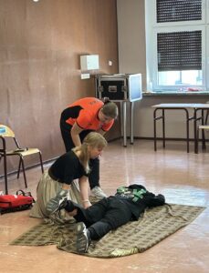 24 września gościliśmy naszą absolwentkę, studentkę ratownictwa medycznego, ratownika KPP panią Julię Cemkę, która w sposób interesujący, momentami też zabawny, ale przede wszystkim praktyczny przedstawiła uczniom klas pierwszych podstawowe zasady niesienia pierwszej pomocy, m.in. w omdleniach, złamaniach, zwichnięciach i utracie przytomności przy zachowaniu własnego bezpieczeństwa. Zajęcia miały charakter praktyczny i tu bardzo dziękujemy wszystkim ochotnikom oraz członkom szkolnego koła PCK za udział i pomoc w przeprowadzeniu zajęć.