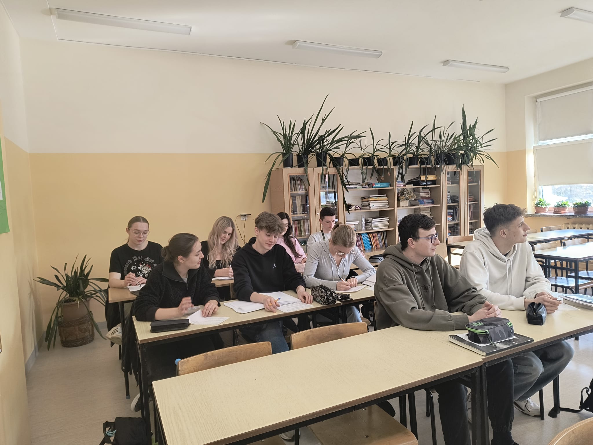 Od roku szkolnego 2025/2026 odbywają się w naszej szkole dodatkowe zajęcia dla maturzystów – „Kreatywne zajęcia z języka polskiego”. Maturzyści powtarzają treści lektur, biorą udział w symulacjach matury ustnej (zakładają nawet legendarne słuchawki i losują przykładowe zestawy). Dzięki takim ćwiczeniom czują się lepiej przygotowani do egzaminu dojrzałości, który już w maju.