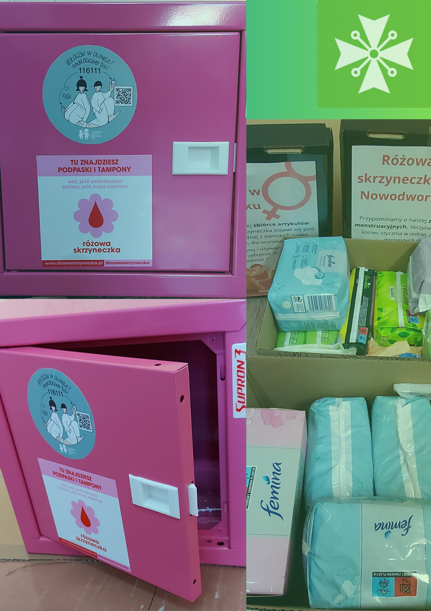Różowa skrzyneczka przekroczyła progi Nowodworka i już nie może się doczekać, aż zagości w jednej z toalet dla uczennic. Zasoby również powoli rosną w siłę!