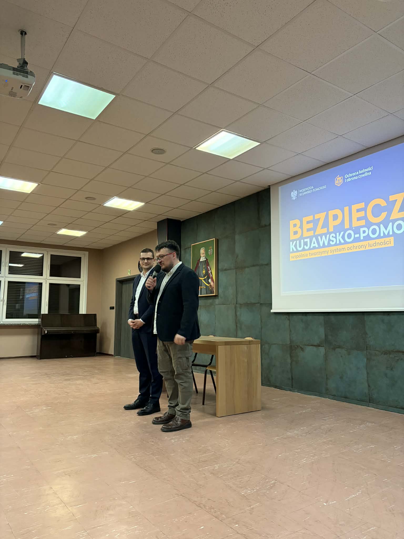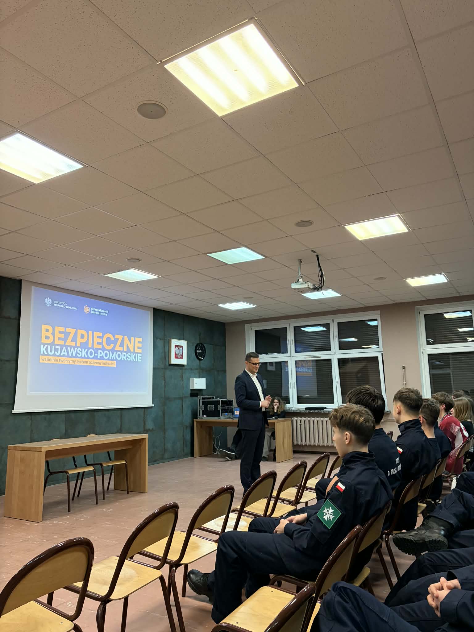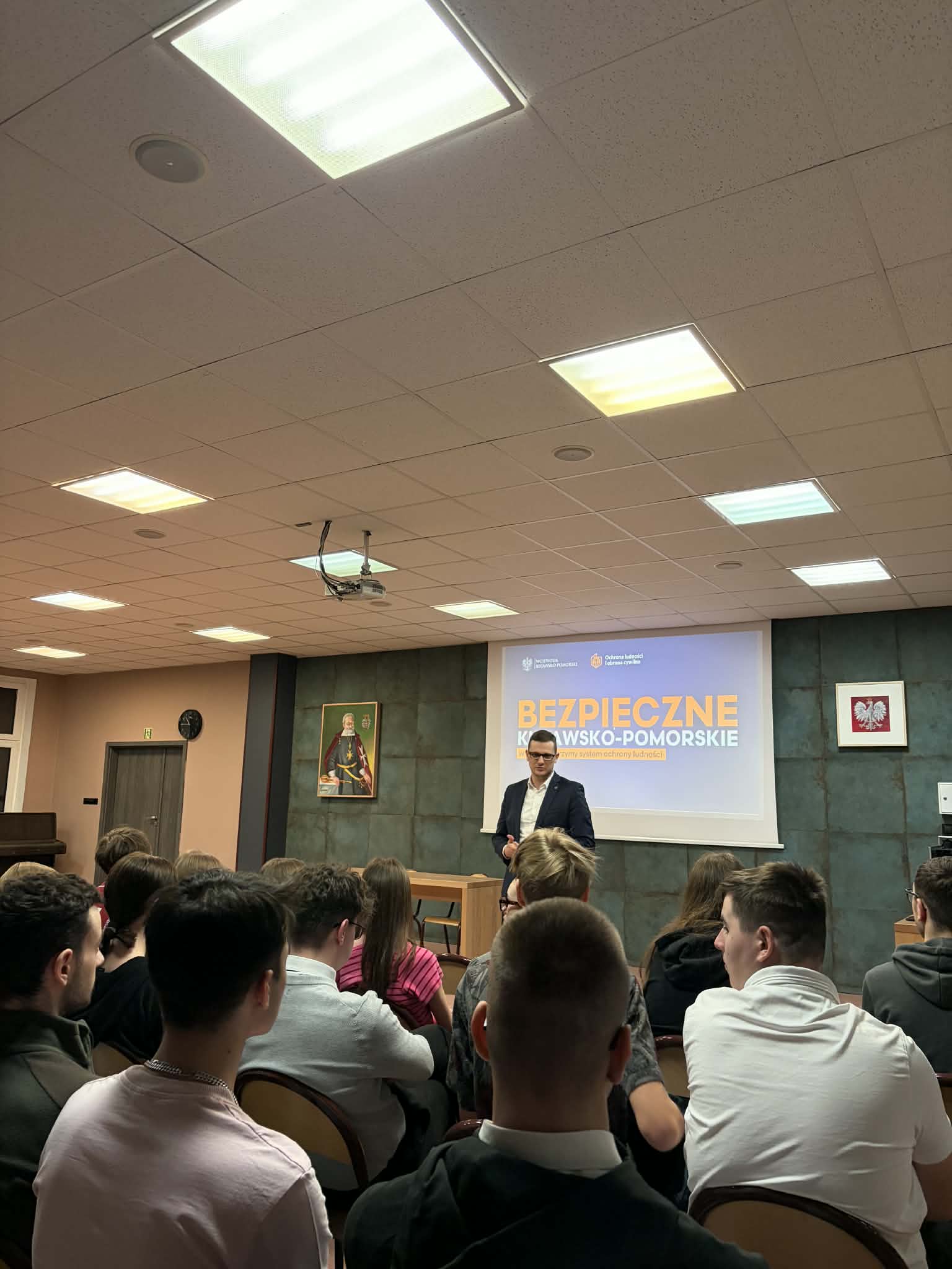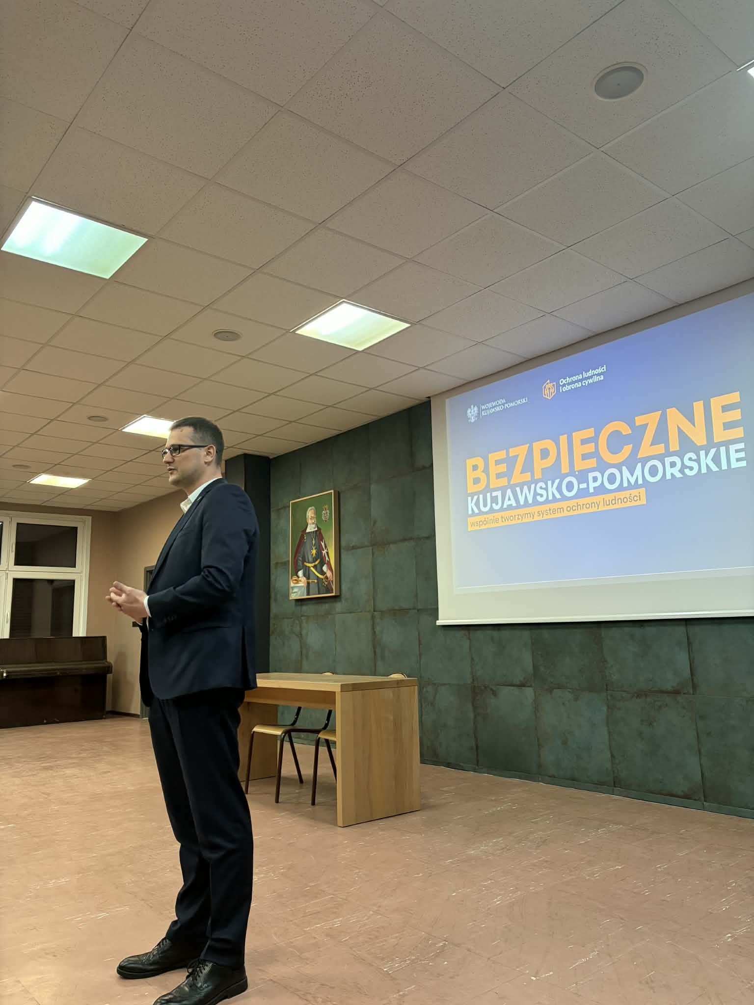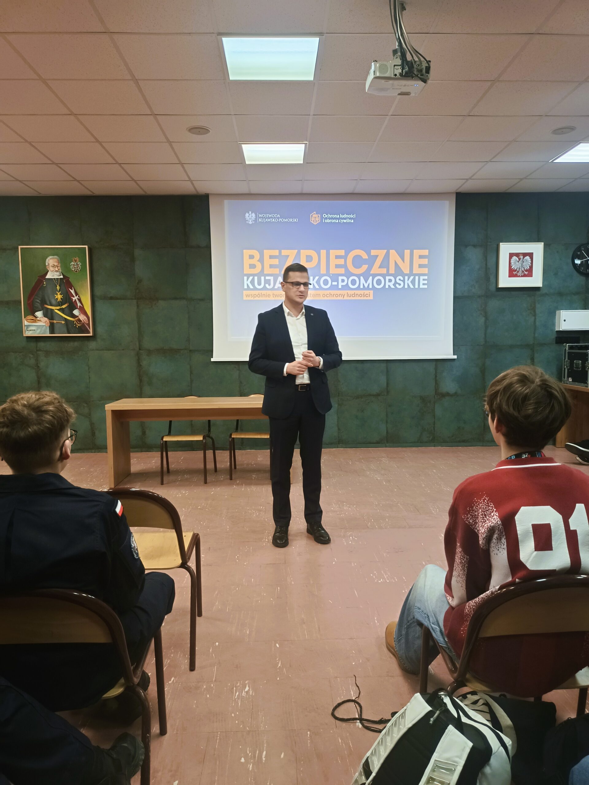 We środę, 11 marca 2026, odwiedził nas wojewoda kujawsko-pomorski, Michał Sztybel. W ramach wizyty rozmawiał z dyrektorem szkoły, panem Waldemarem Ptakiem, o naszej ofercie edukacyjnej, która od bieżącego roku szkolnego obejmuje klasę mundurową, przygotowującą młodzież do pracy w policji oraz straży granicznej. Następnie pan wojewoda spotkał się z uczniami, by przeprowadzić lekcję obywatelską, podczas której rozmawiał z uczniami o fake newsach oraz informacjach zawartych w poradniku bezpieczeństwa. Młodzież chętnie zadawała pytania, a nasz gość równie chcętnie odpowiadał na zagadnienia związane z administracją czy sytuacjami kryzysowymi. Zapraszamy do nas częściej 🙂