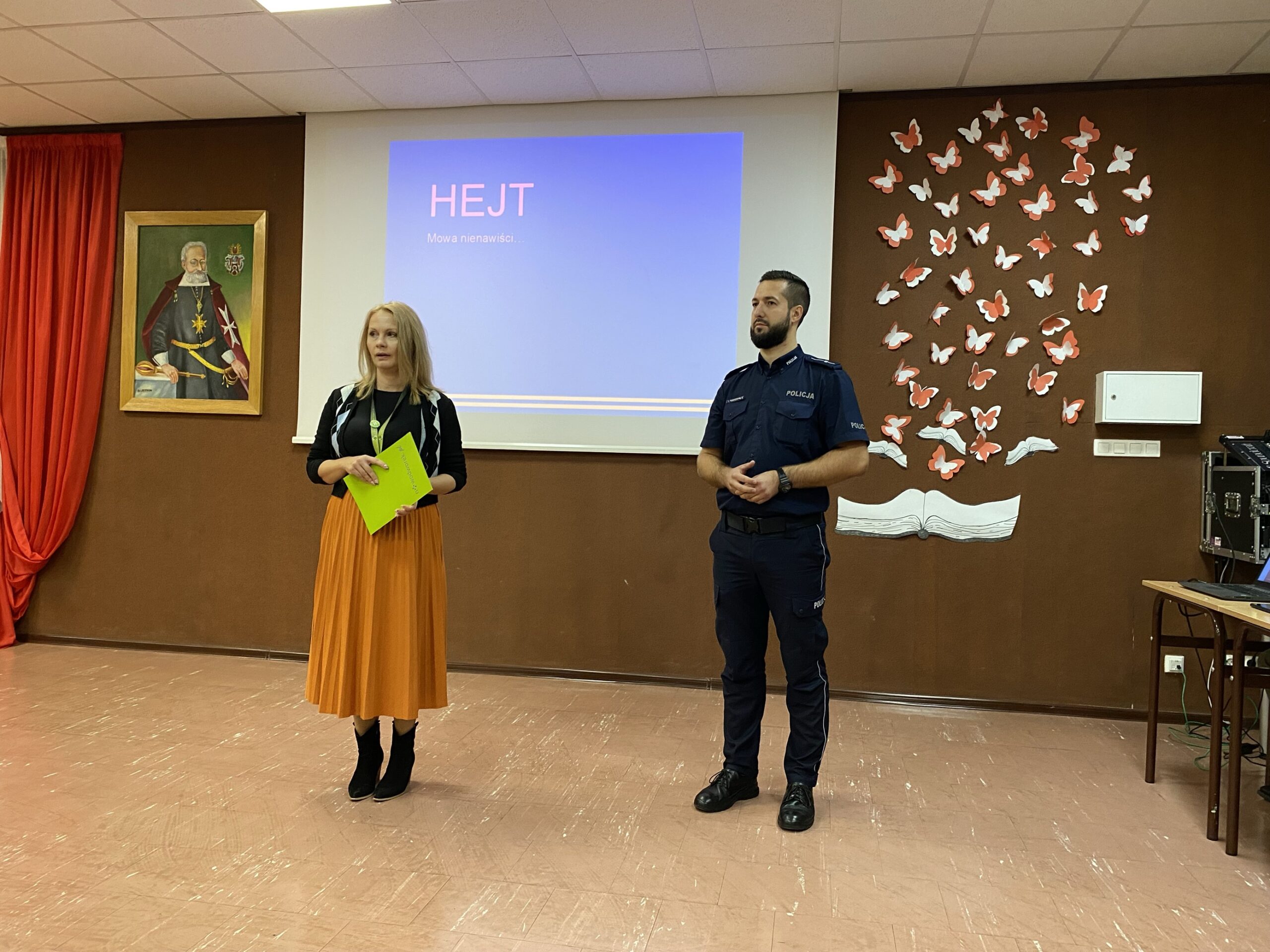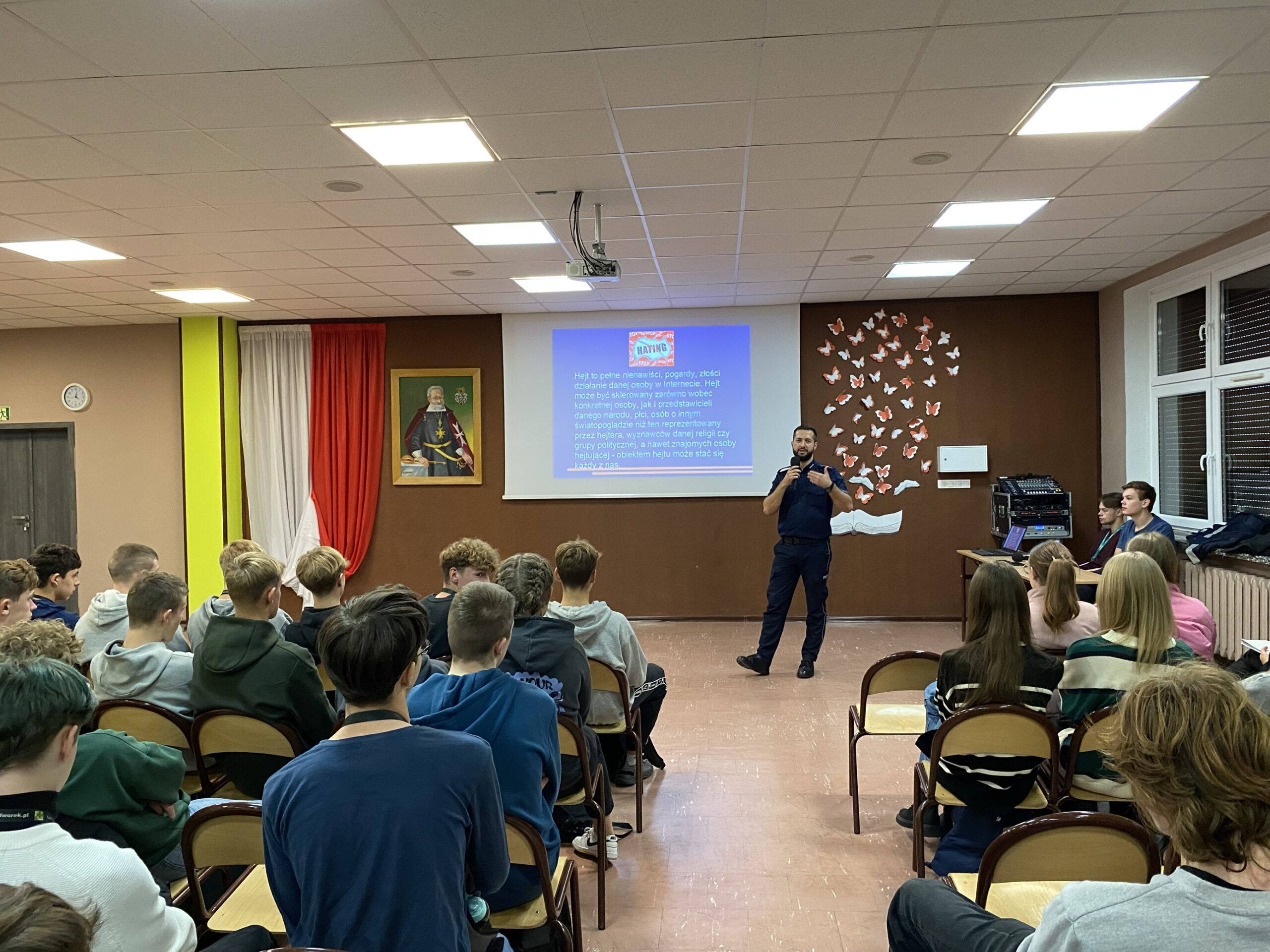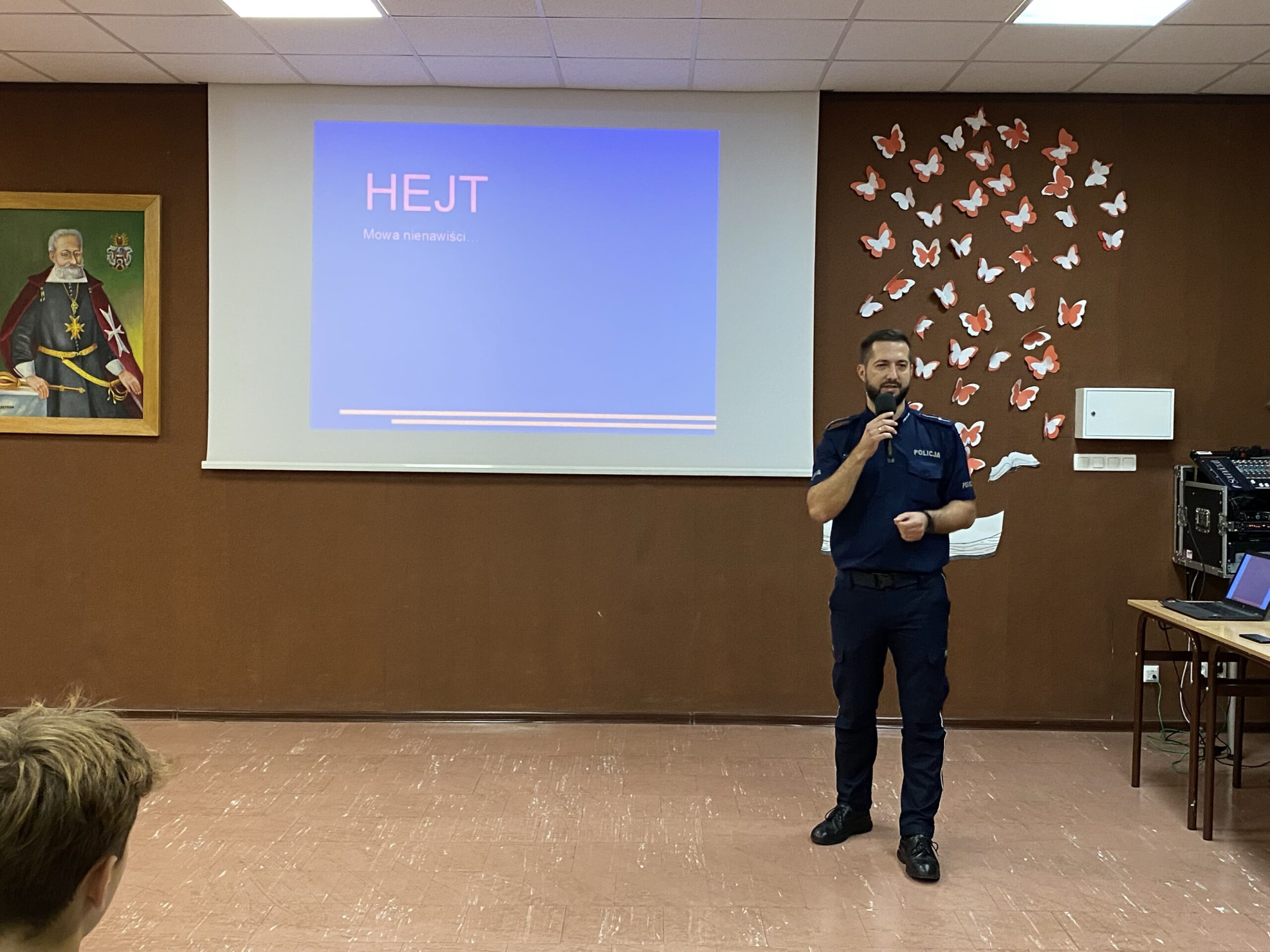 W dniu 19 października uczniowi Nowodworka po raz trzeci uczestniczyli w prelekcji dotyczącej przeciwdziałania przemocy, hejtowi oraz odpowiedzialności prawnej nieletnich.