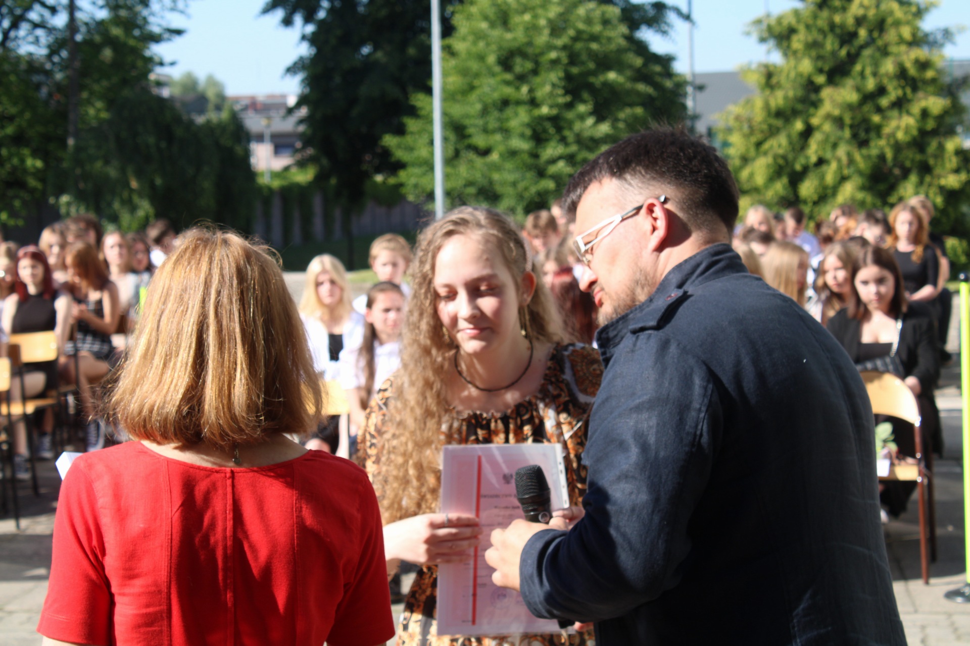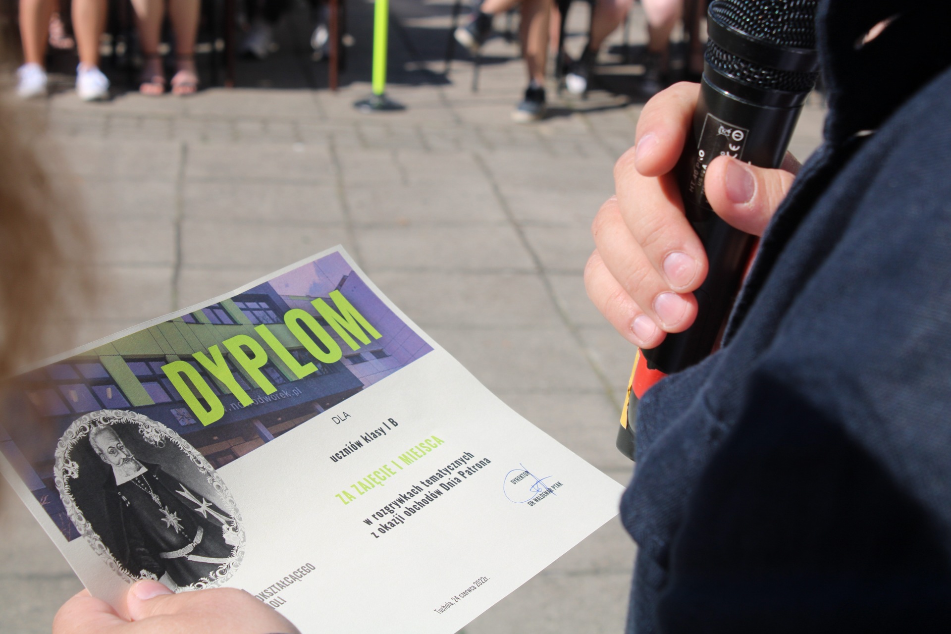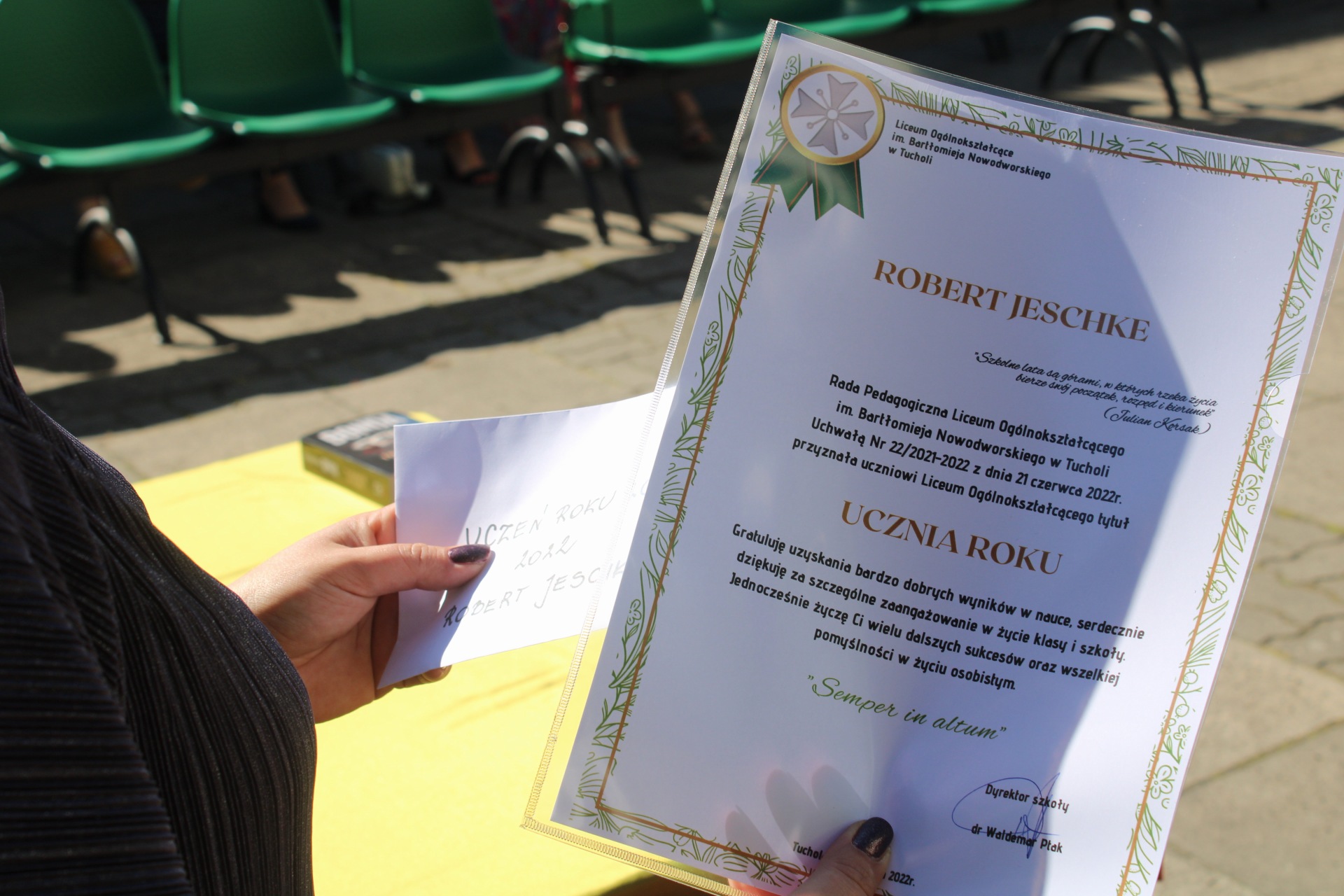 24 czerwca 2022 roku o godzinie 8.30 cała społeczność Nowodworka zebrała się na szkolnym dziedzińcu, aby uroczyście zakończyć rok szkolny 2021/ 2022. Po wprowadzeniu sztandaru oraz odśpiewaniu hymnu państwowego – prowadzący przywitali grono pedagogiczne, na czele z panem dyrektorem – Waldemarem Ptakiem oraz panią wicedyrektor – Joanną Drożdż, jak również wszystkich uczniów Nowodworka. Pan dyrektor wygłosił przemówienie, a następnie wraz z panią wicedyrektor wręczyli uczniom: świadectwa z wyróżnieniem, listy gratulacyjne dla rodziców, dyplomy za 100 % frekwencji, dyplomy i nagrody dla Uczniów Roku, dyplomy i upominki za turniej międzyklasowy debat oxfordzkich oraz Dzień Patrona, dyplomy i nagrody dla uczniów szczególnie zaangażowanych w życie szkoły i środowiska lokalnego oraz nagrodę Rady Rodziców za najwyższy wskaźnik wpłat.