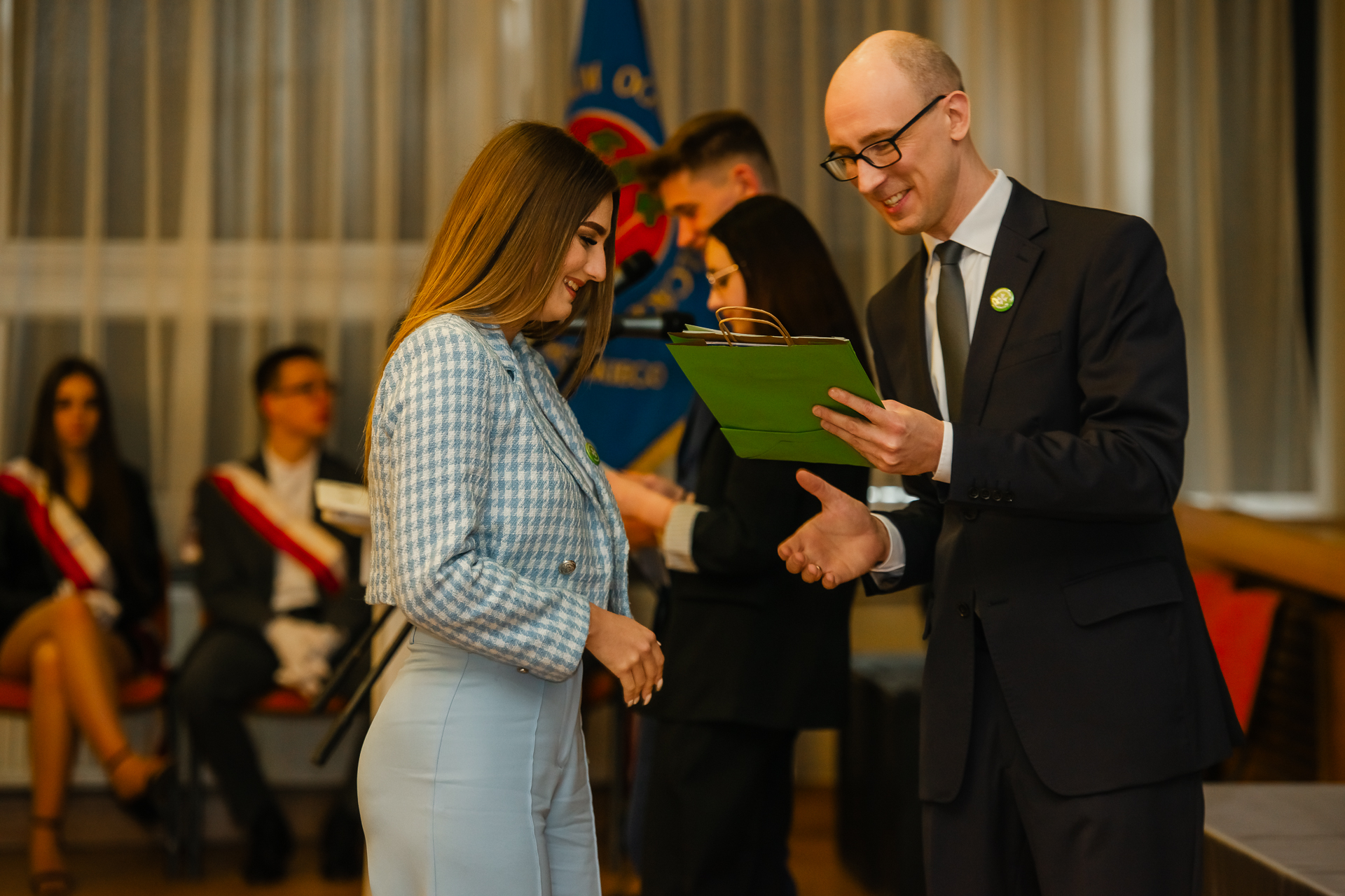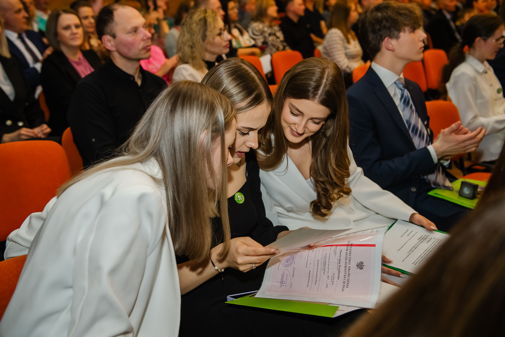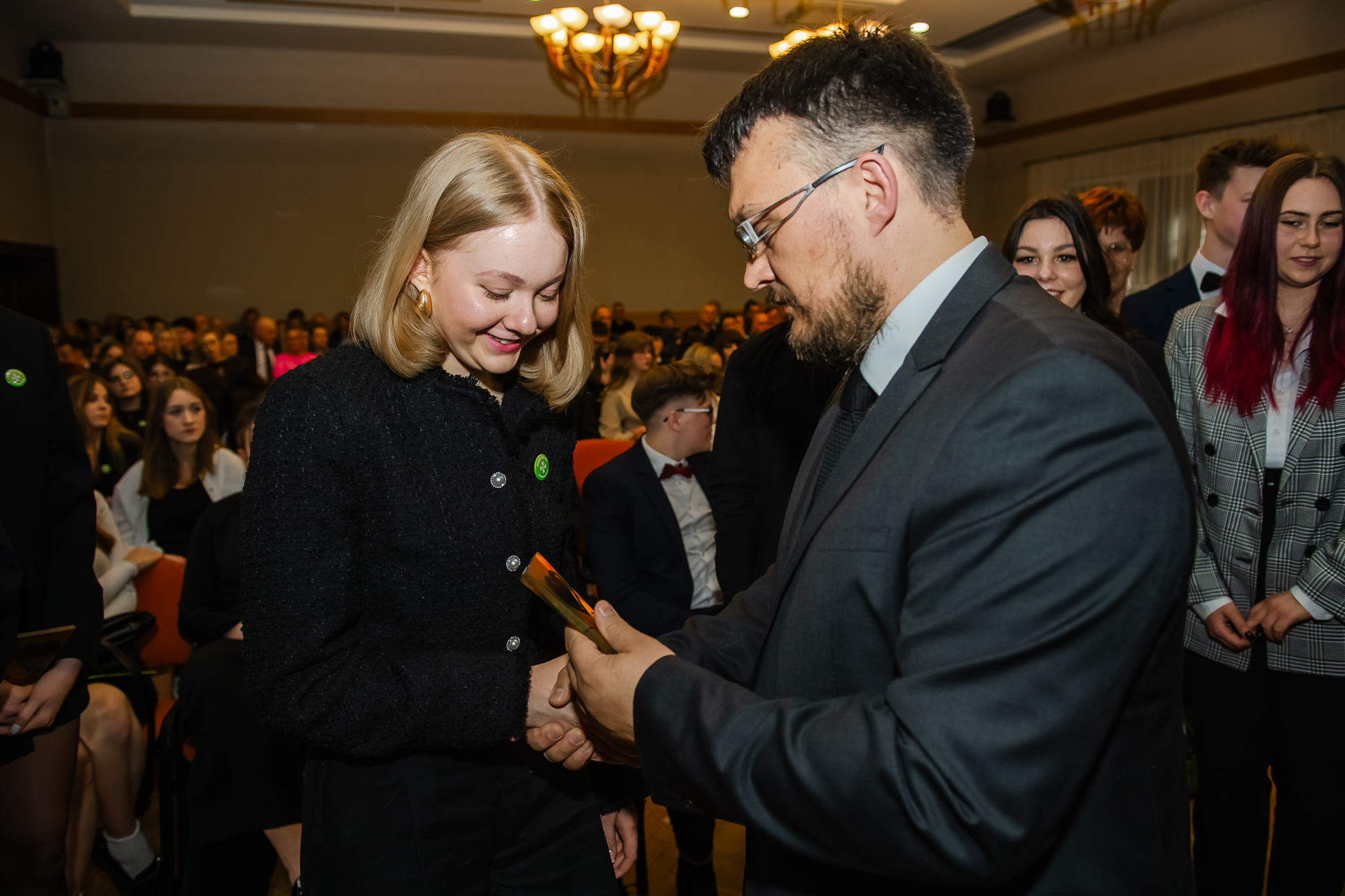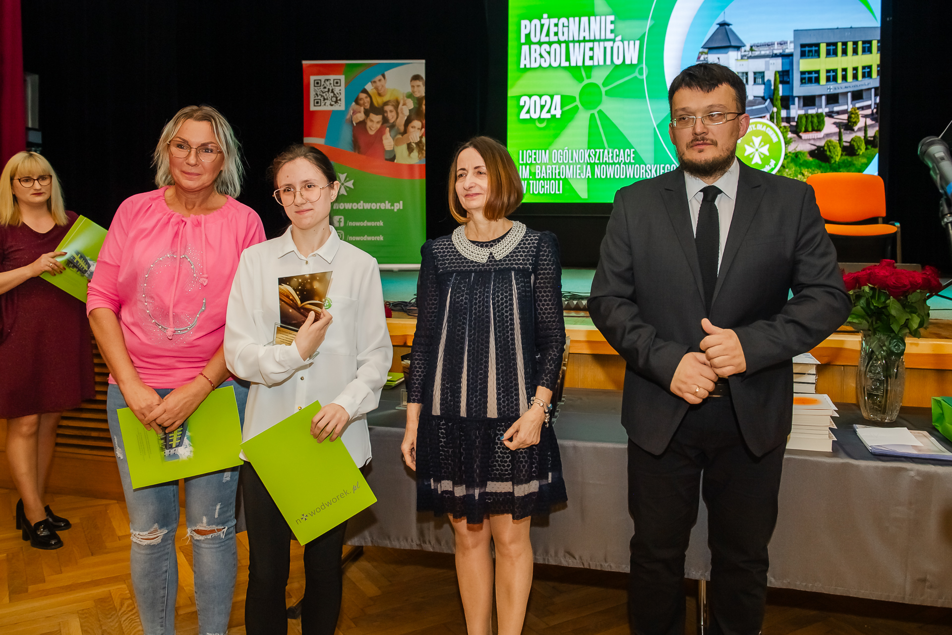 Pan Dyrektor Waldemar Ptak oraz Pani Wicedyrektor Joanna Drożdż wręczyli tytuł Honorowego Absolwenta Liceum 2024 – Miłoszowi Michalakowi z klasy 4 b, tytuł Primus Inter Pares za najwyższą średnią ocen – Julii Wróblewskiej i Weronice Janik z klasy 4 a i tytuł Laudabilis, czyli „godny pochwały” – Lenie Piotrowskiej z klasy 4a.