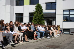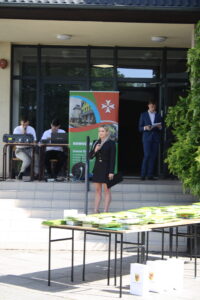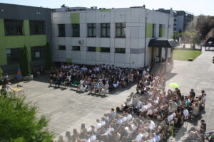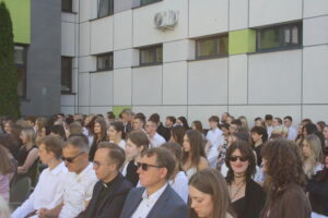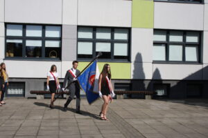 Prowadzący złożyli całej społeczności życzenia wspaniałych, zdrowych i bezpiecznych wakacji. Wspólnie zaśpiewaliśmy hymn szkoły, wyprowadzono sztandar i rozeszliśmy się do swoich klas.