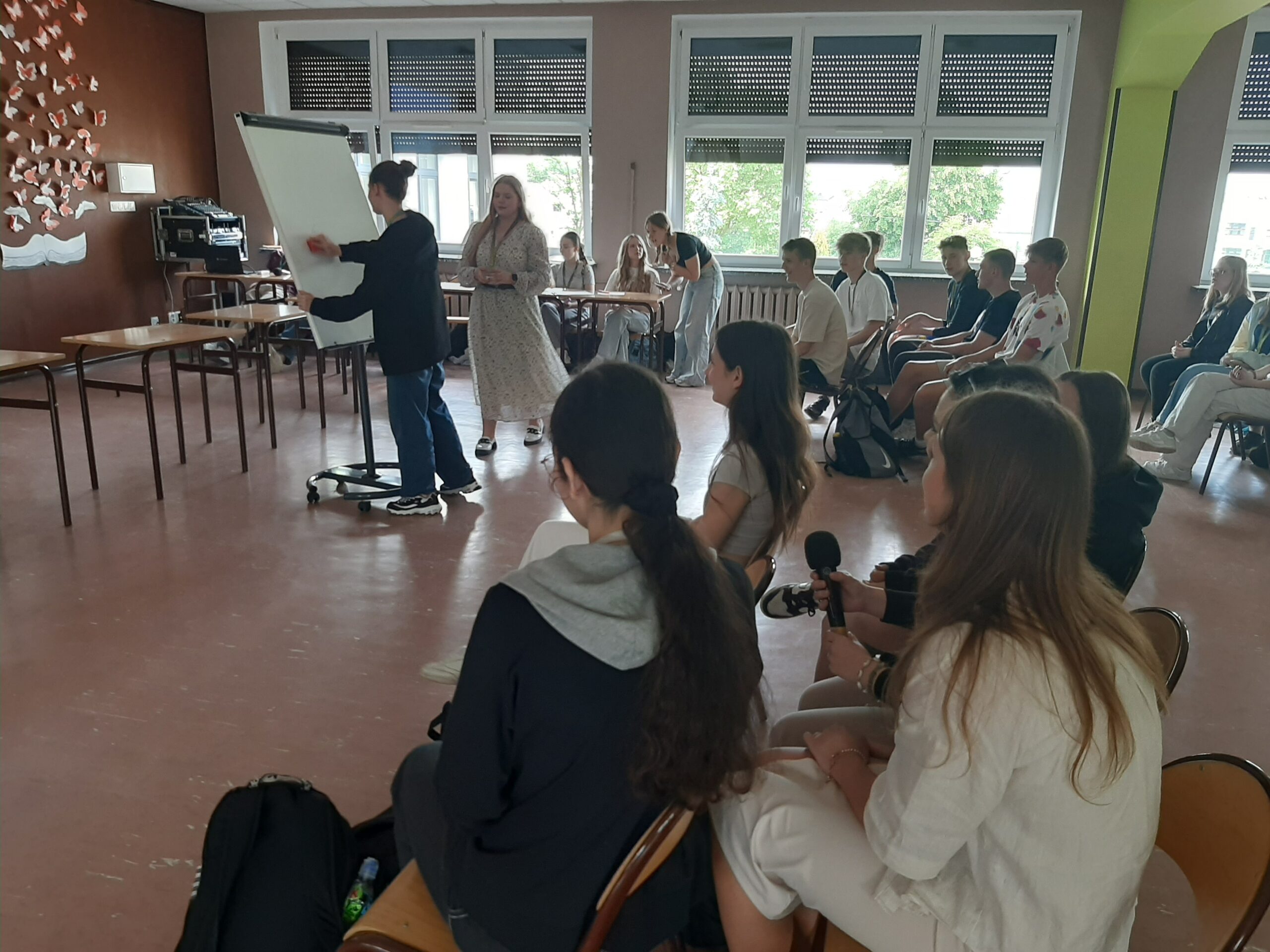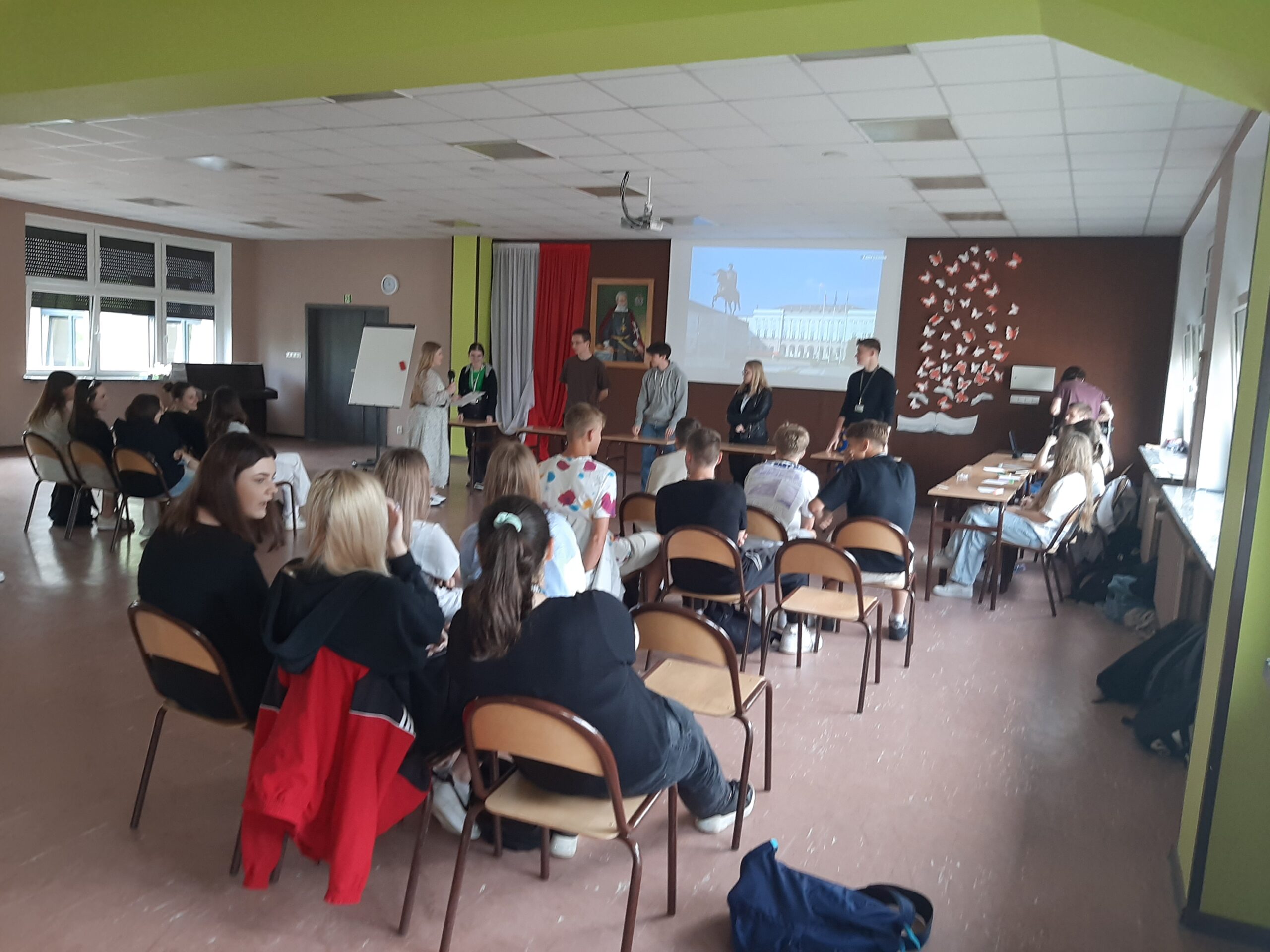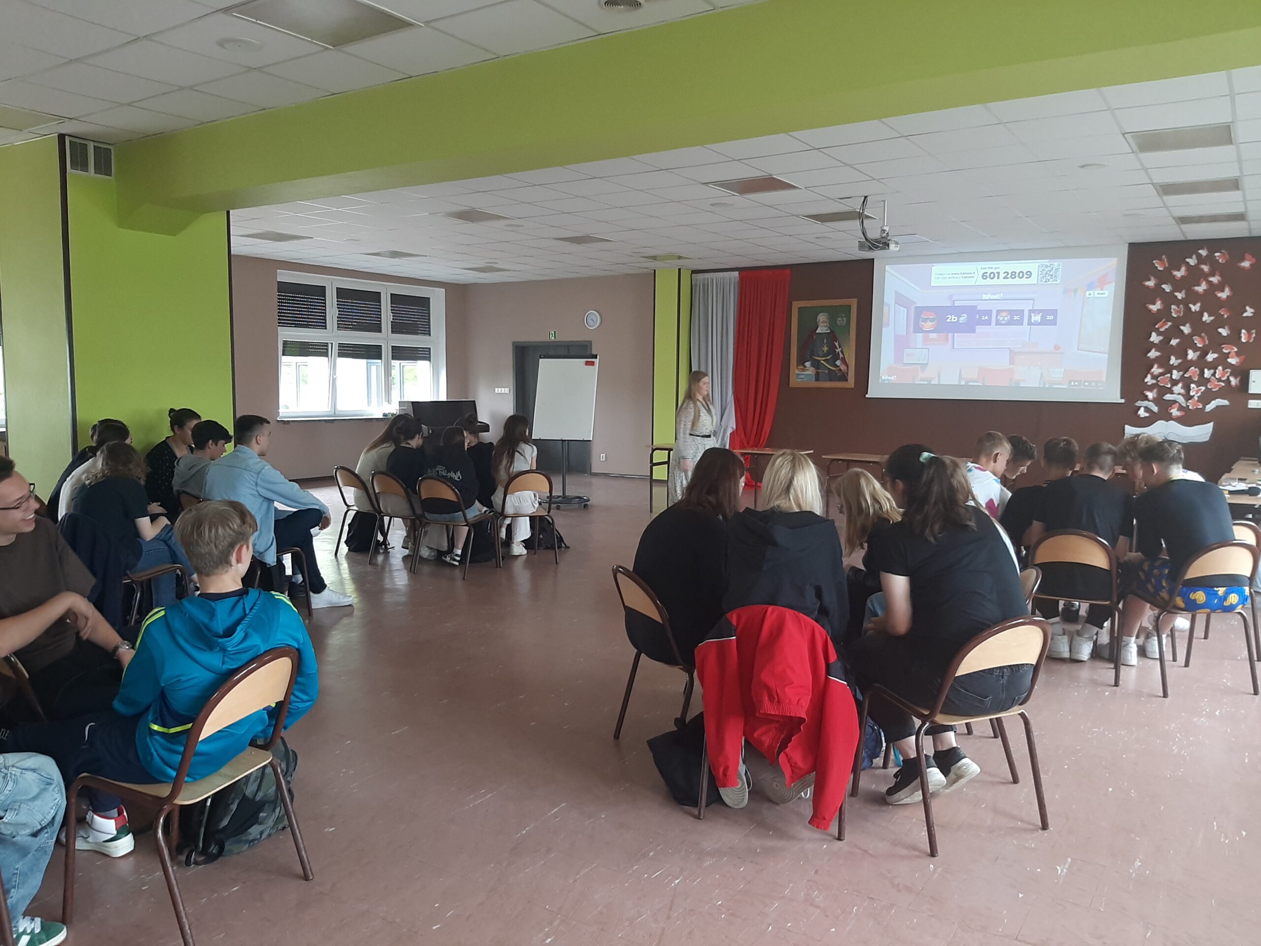 24 maja odbyły się rozgrywki z wiedzy o społeczeństwie dla klas drugich. Drużyny reprezentujące wszystkie klasy zmagały się w zadaniach dotyczących instytucji państwa polskiego, instytucji unijnych, a także zagadnień związanych z organizacjami międzynarodowymi. Wśród konkurencji były tzw. “szybkie strzały”, czyli zadania polegające na odpowiedzi na krótkie pytania, kahooty czy kalambury. Jak mówi inicjatorka przedsięwzięcia Dominika Kiełpikowska z klasy I c: Organizacja konkursu „Wiedza o społeczeństwie na wesoło”, nie była łatwym zadaniem. Etap przygotowań i konkurs wspominam bardzo dobrze i w przyszłości, będę chciała to powtórzyć. Podczas przygotowywania konkurencji mogłam poszerzyć swoją wiedzę, sprawiło mi to dużo radości. Podczas konkursu widząc zapał, z jakim klasy rywalizują między sobą, poczułam, iż warto było spędzić nad organizacją konkursu tyle czasu. Rywalizację klas drugich wygrała klasa II c. Gratulujemy!