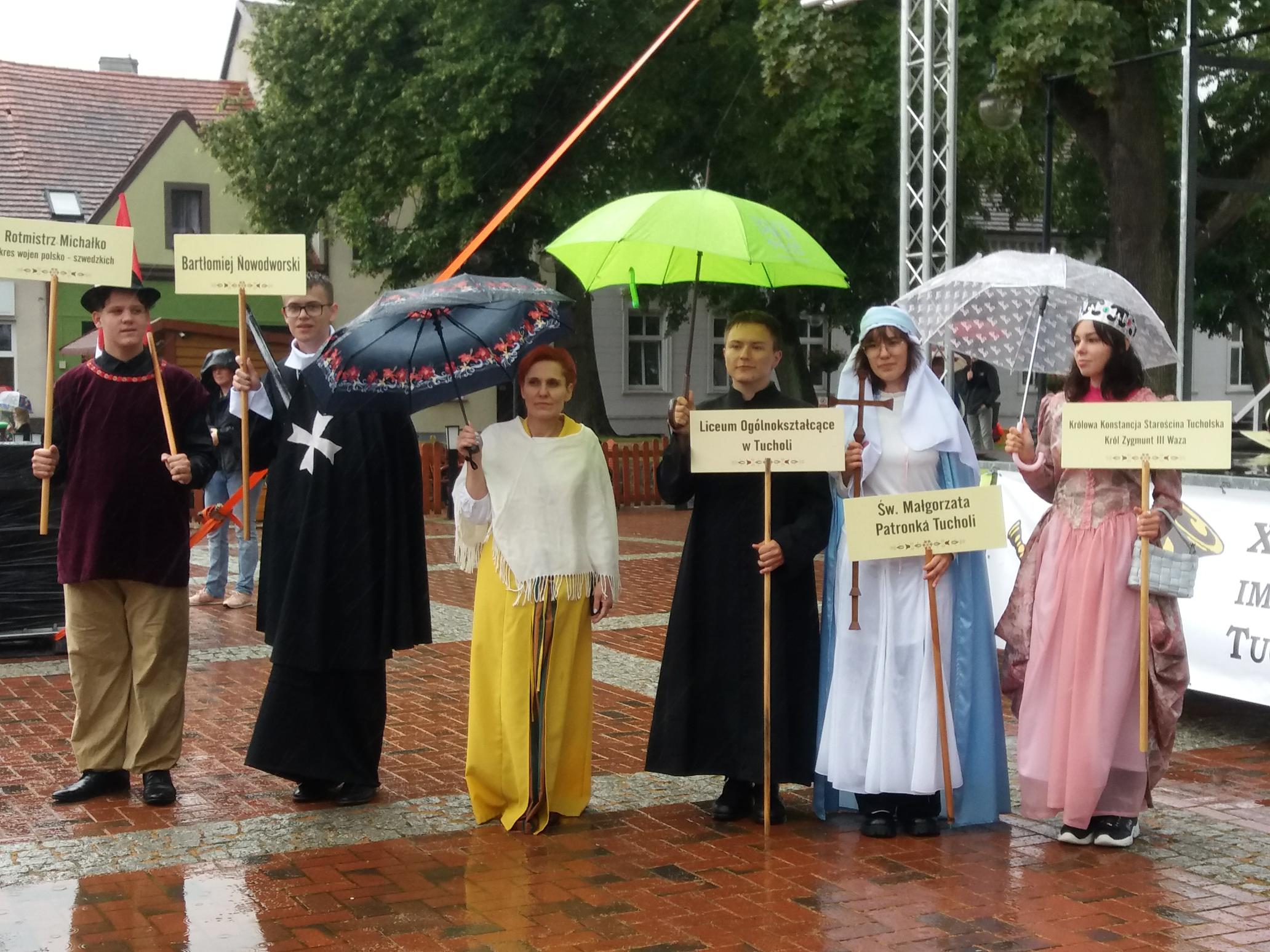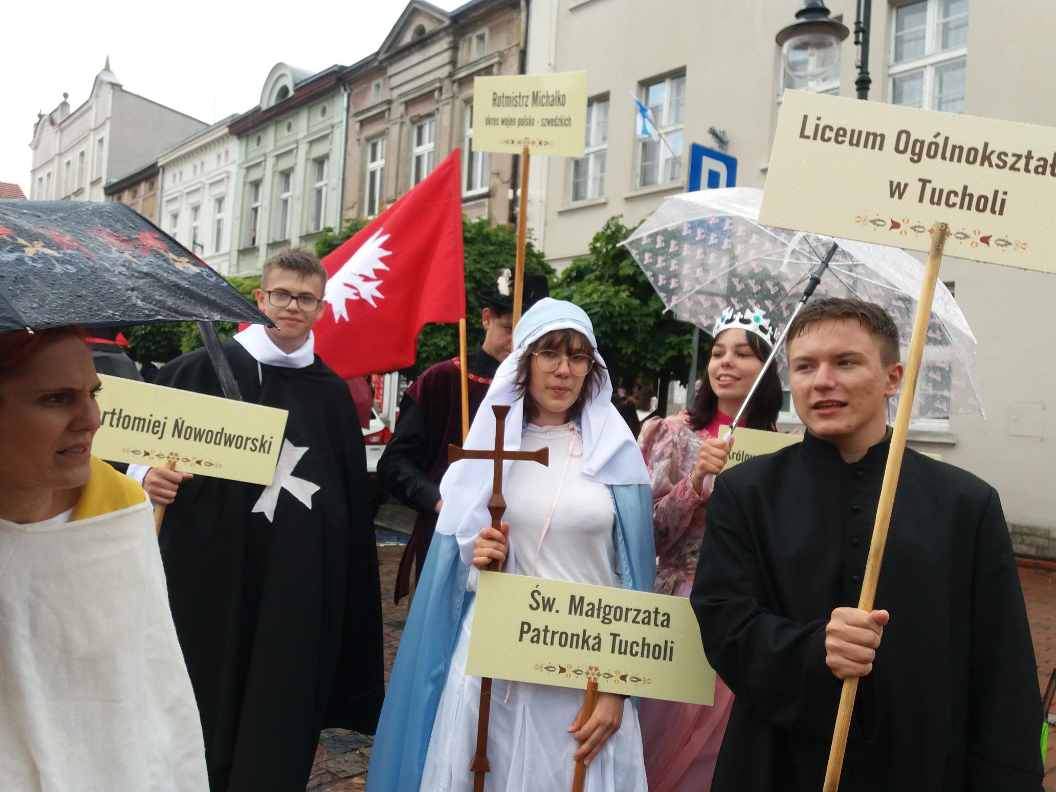 Naszą Szkołę reprezentowała grupa uczniów, którzy wcielili się w ważne dla naszego miasta i regionu postaci historyczne: Adrianna Roda jako święta Małgorzata – patronka Tucholi, Kacper Chabowski – jako patron szkoły Bartłomiej Nowodworski, Anna Drejasz – królowa Konstancja, a zarazem starościna tucholska, Patryk Pajonkowski jako ksiądz Romuald Frydrychowicz – przedstawiciel wybitnej patriotycznej rodziny na Pomorzu.